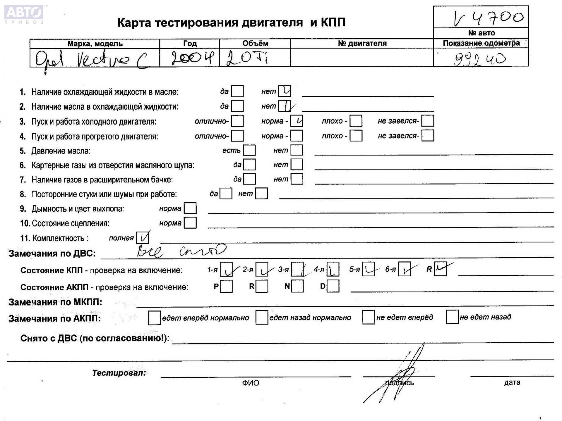 | Марка / Модель / Год: | Opel Vectra C (2002-2008) 2004 |