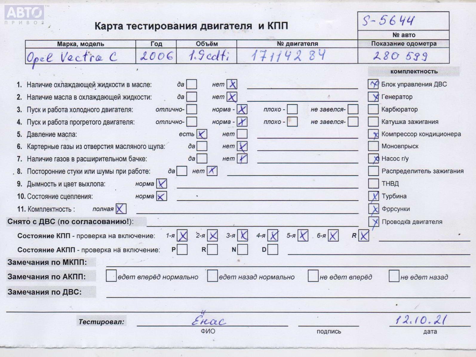 | Марка / Модель / Год: | Opel Vectra C (2002-2008) 2006 |