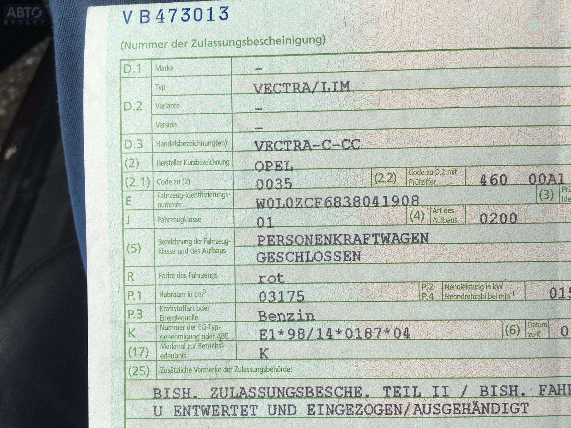 | Марка / Модель / Год: | Opel Vectra C (2002-2008) 2002 |