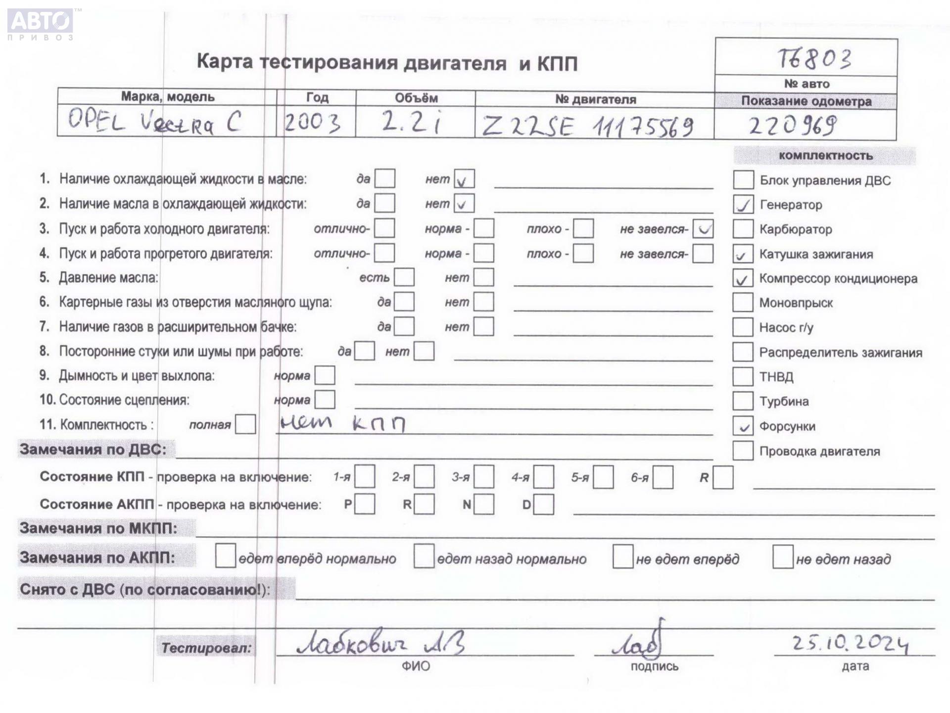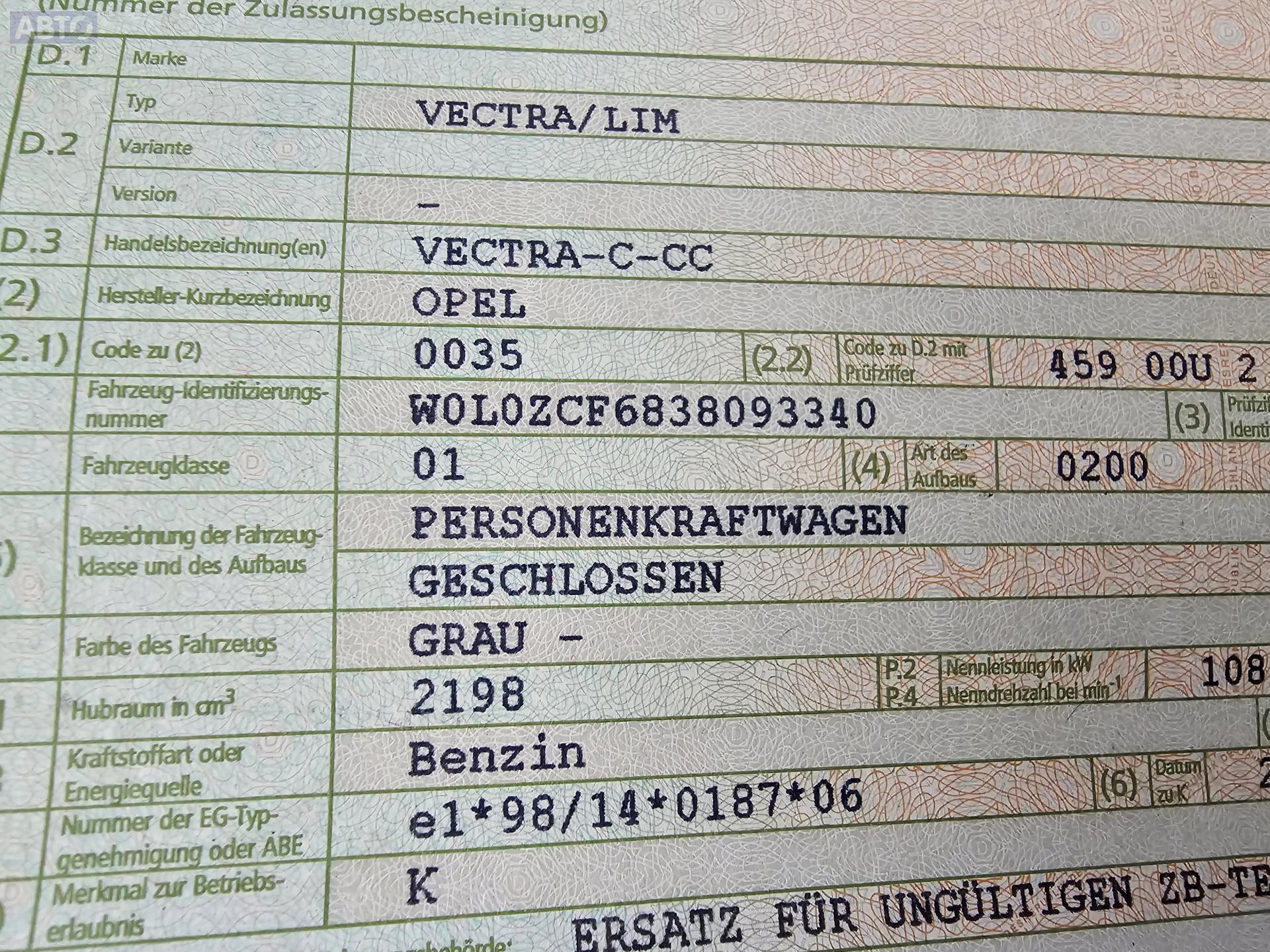 | Марка / Модель / Год: | Opel Vectra C (2002-2008) 2003 |