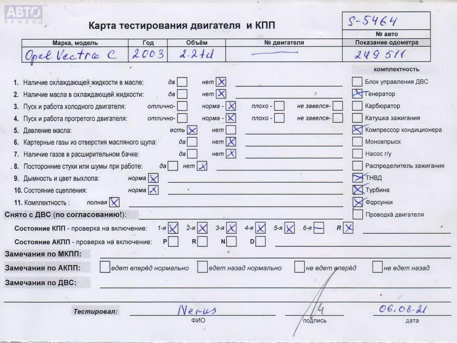 | Примечания: | подтеки масла, наличие дефекта |