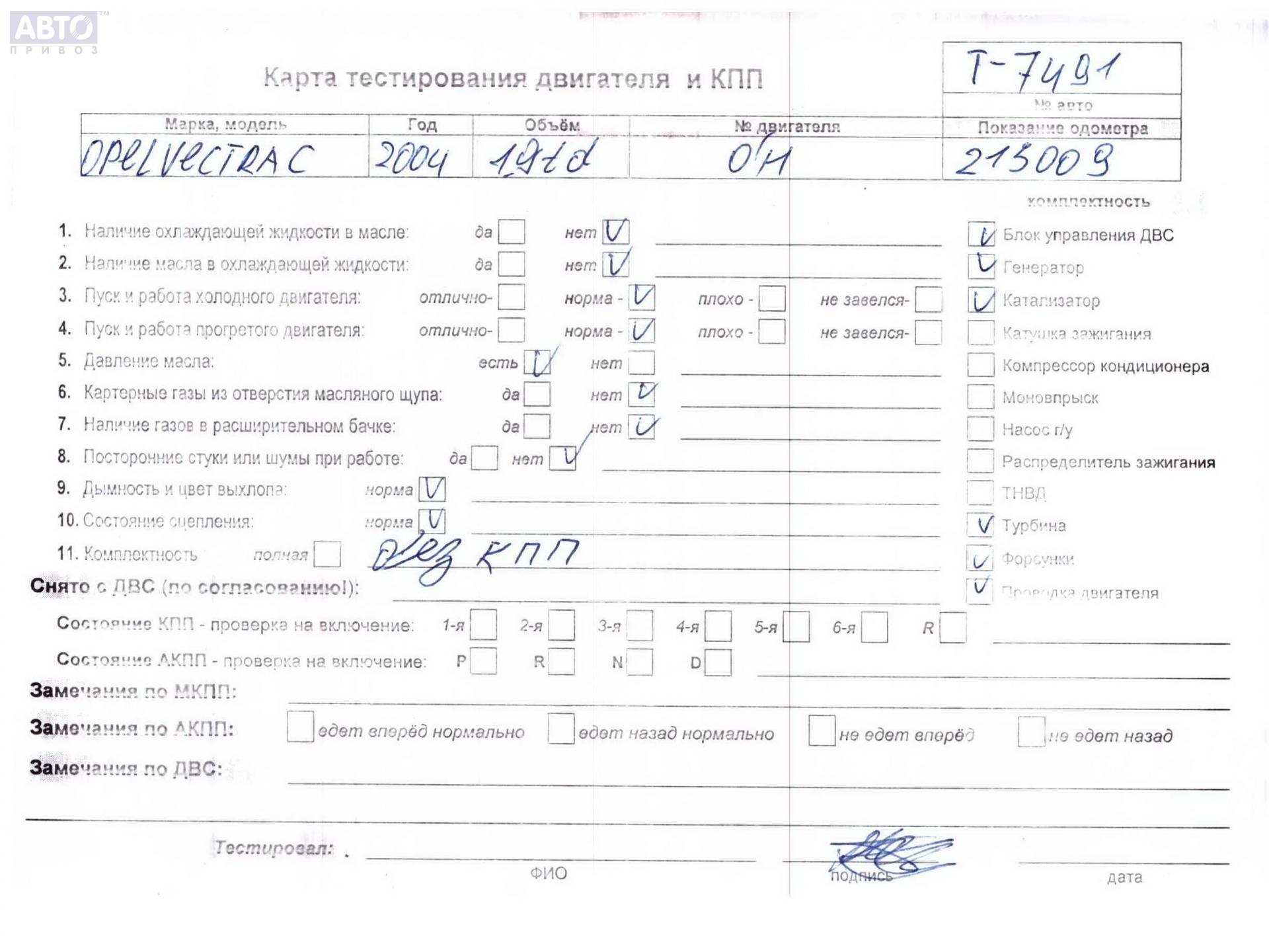 | Марка / Модель / Год: | Opel Vectra C (2002-2008) 2004 |