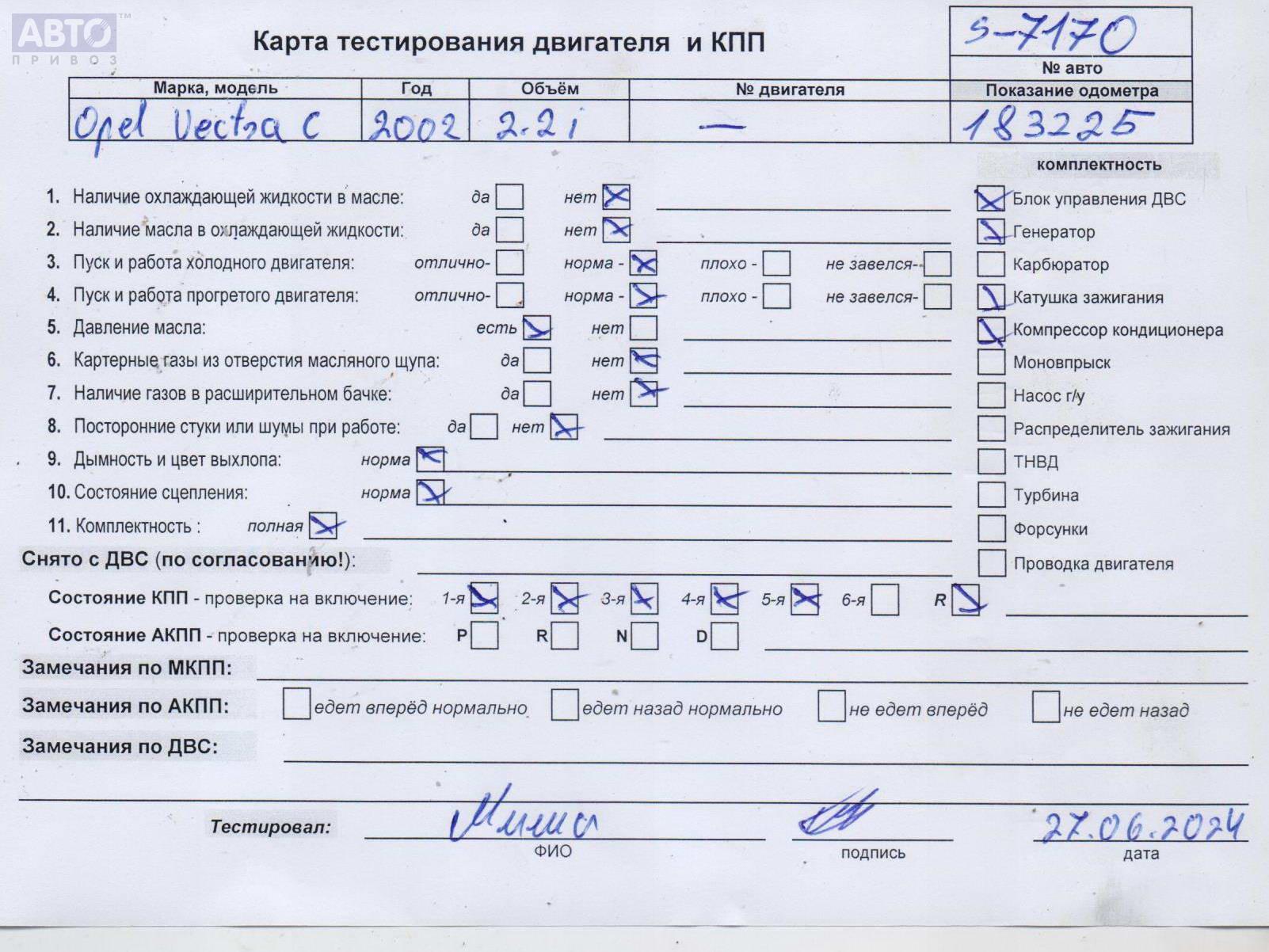 | Марка / Модель / Год: | Opel Vectra C (2002-2008) 2002 |