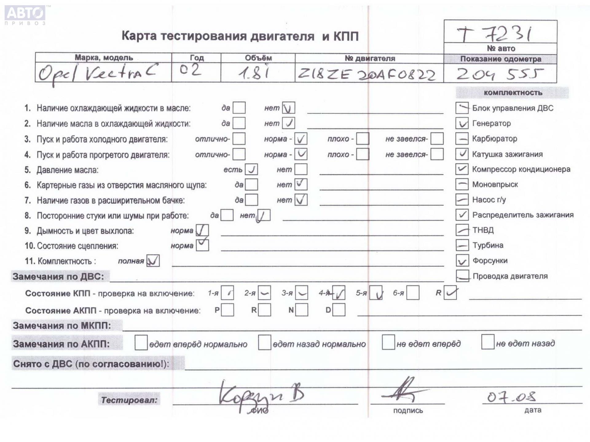 | Марка / Модель / Год: | Opel Vectra C (2002-2008) 2002 |