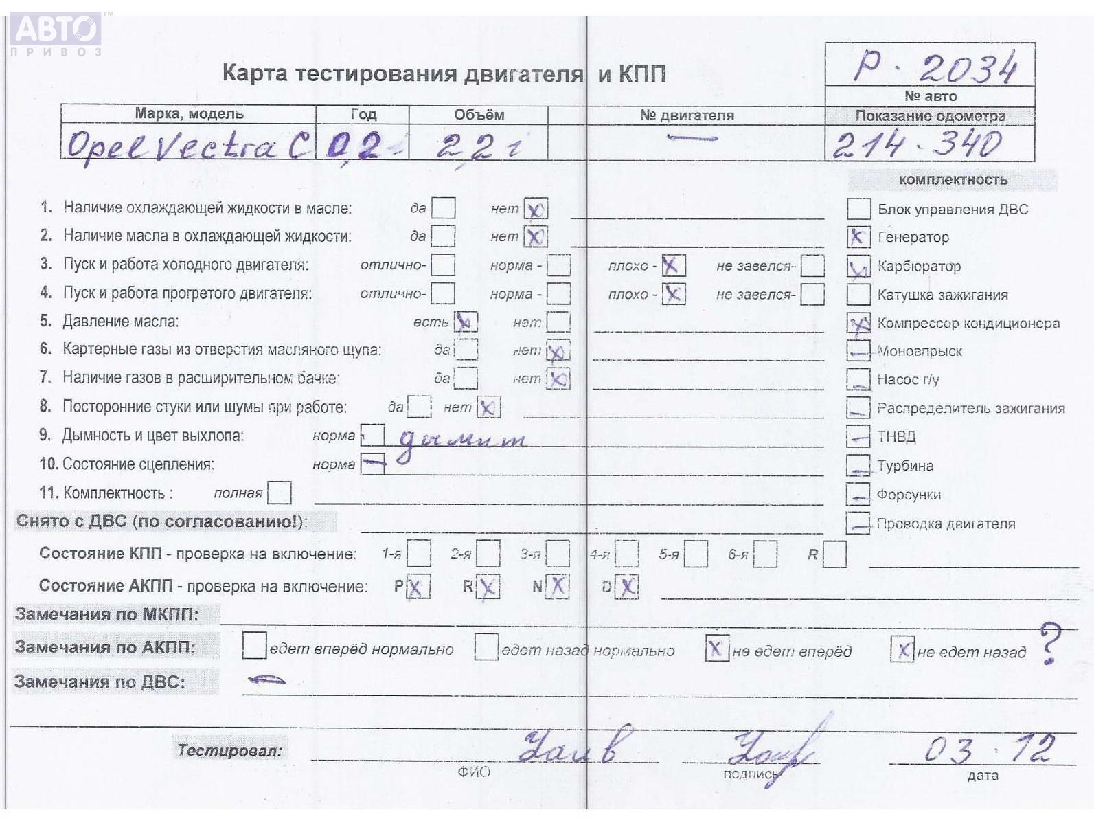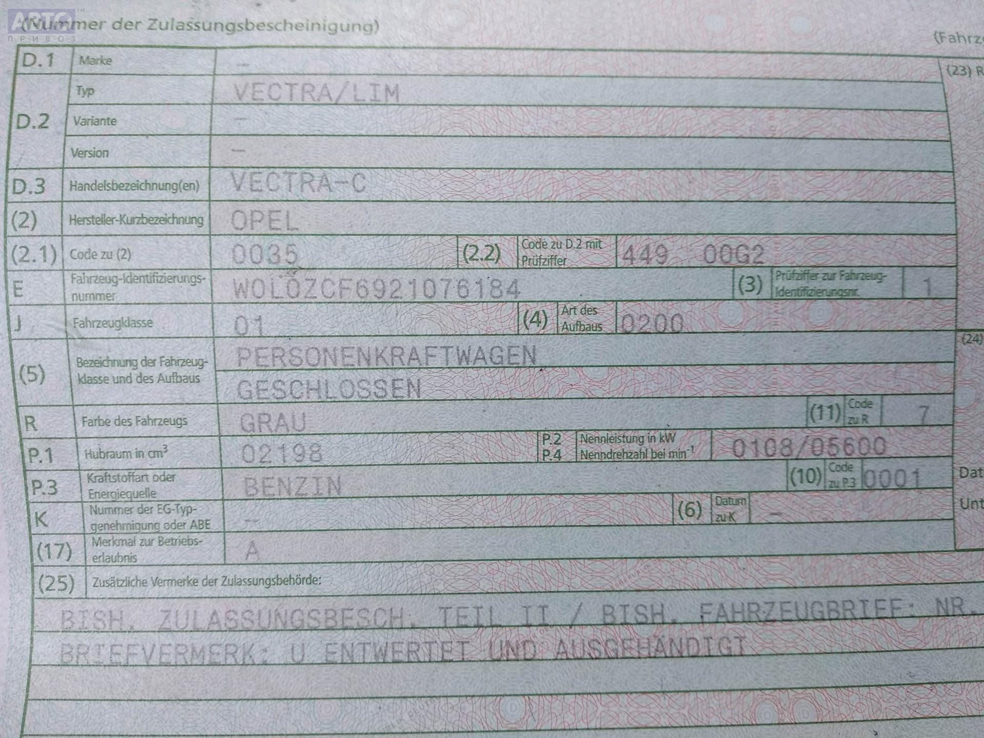 | Автомобиль / VIN: | P2034 W0L0ZCF6921076184 |