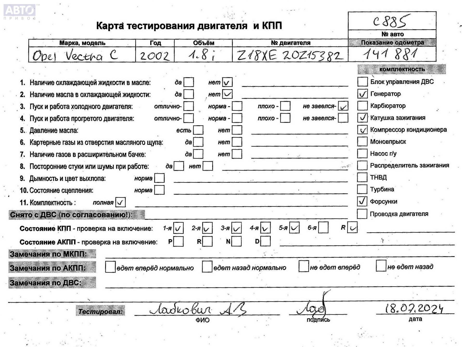 | Марка / Модель / Год: | Opel Vectra C (2002-2008) 2002 |