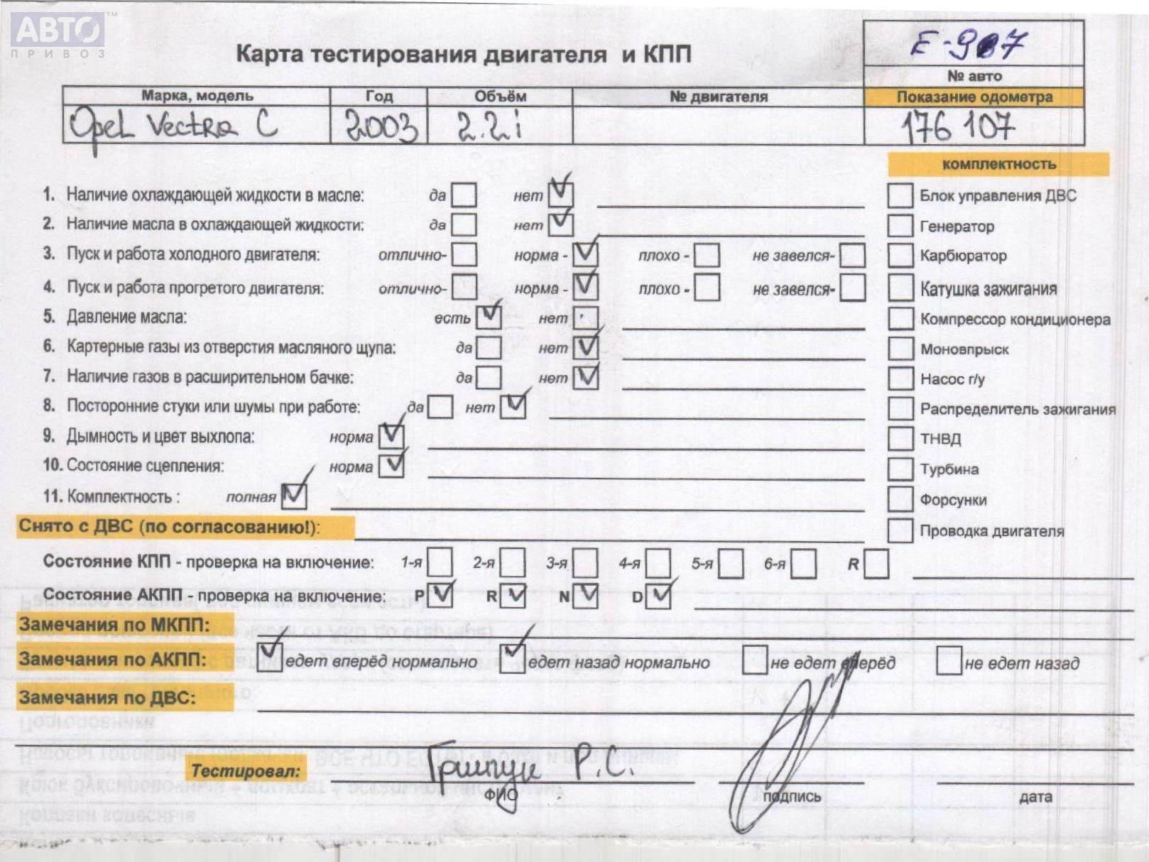 | Марка / Модель / Год: | Opel Vectra C (2002-2008) 2003 |