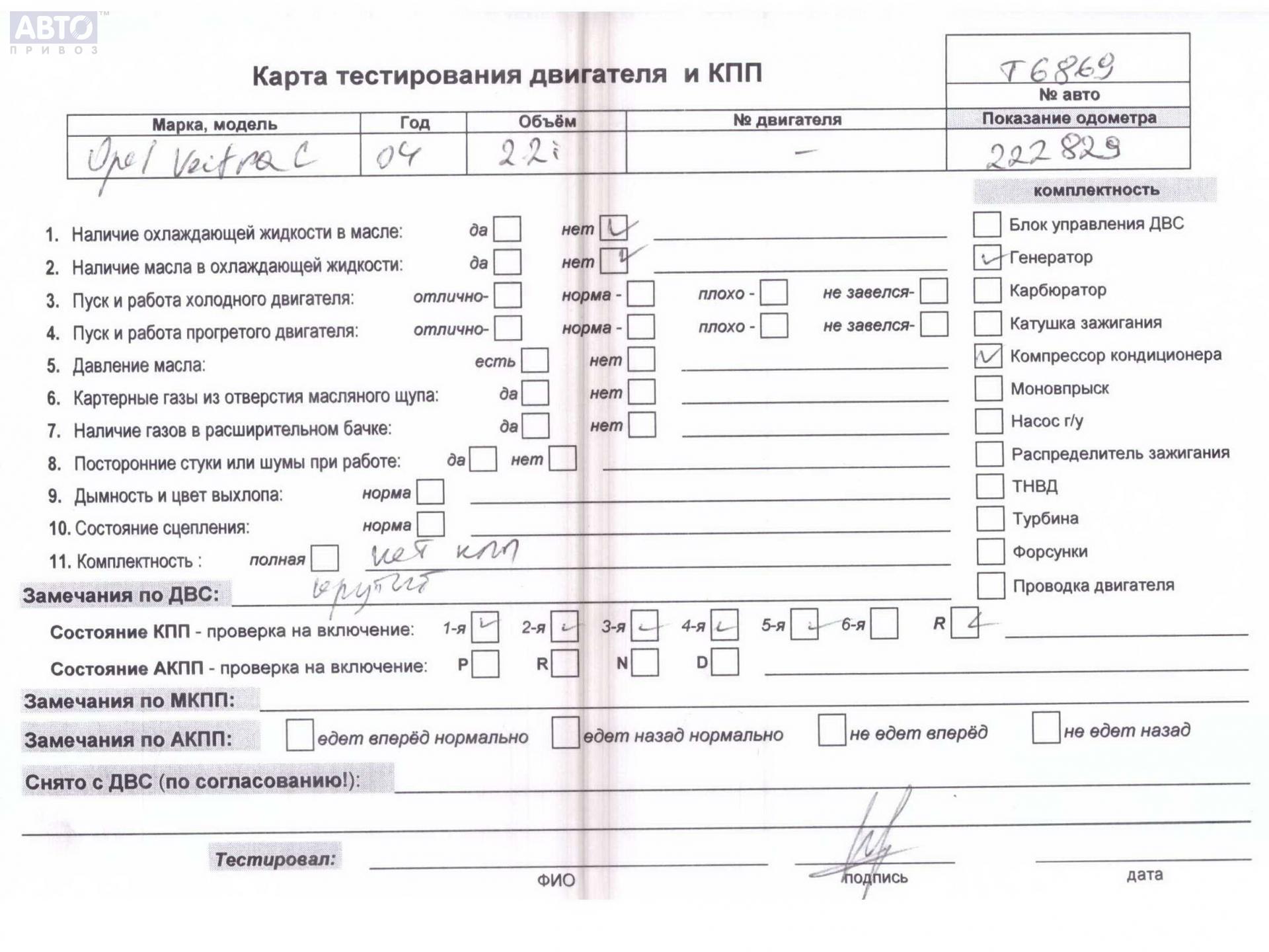 | Автомобиль / VIN: | T6869 W0L0ZCF6851015504 |