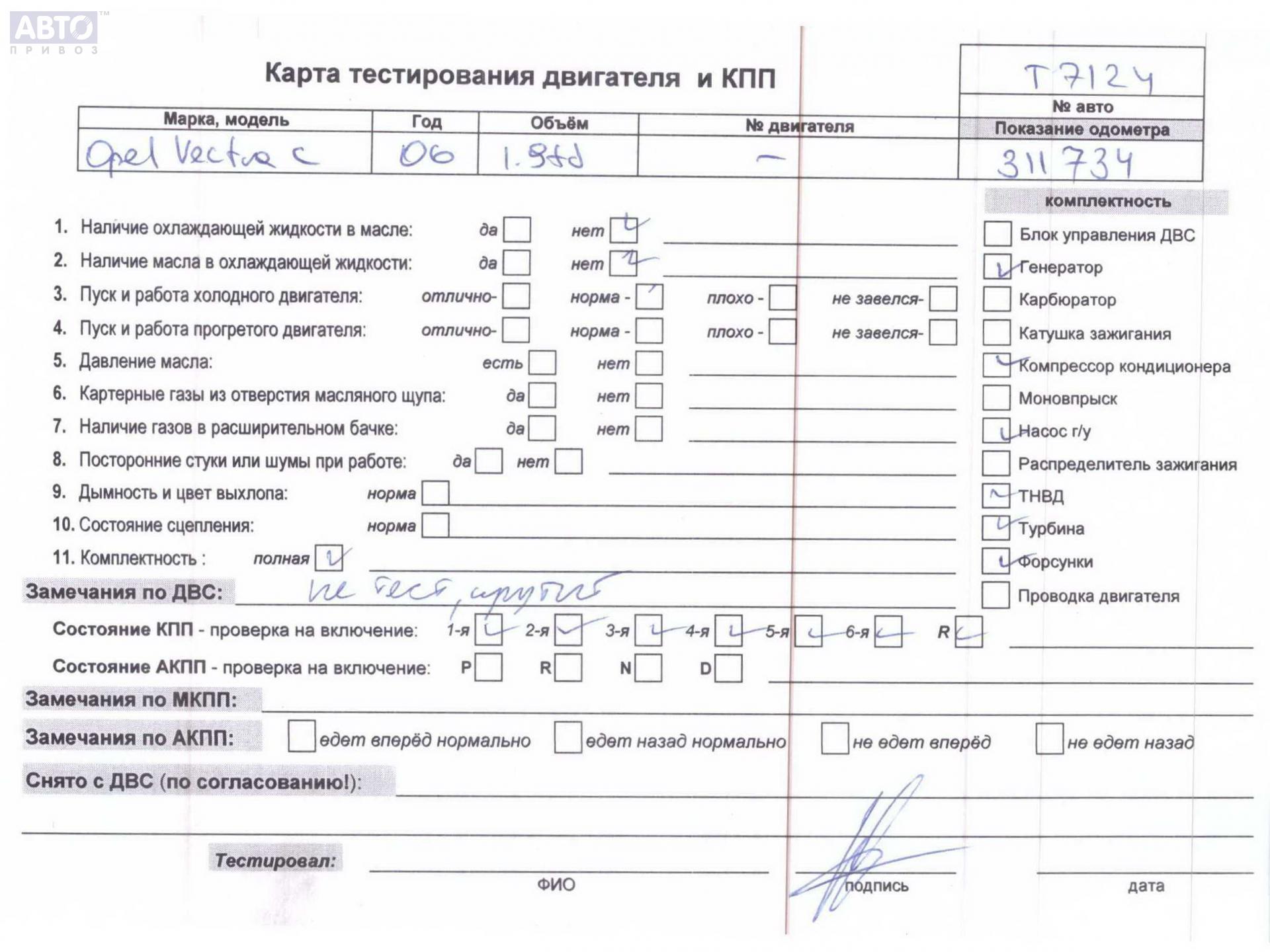 | Марка / Модель / Год: | Opel Vectra C (2002-2008) 2007 |
