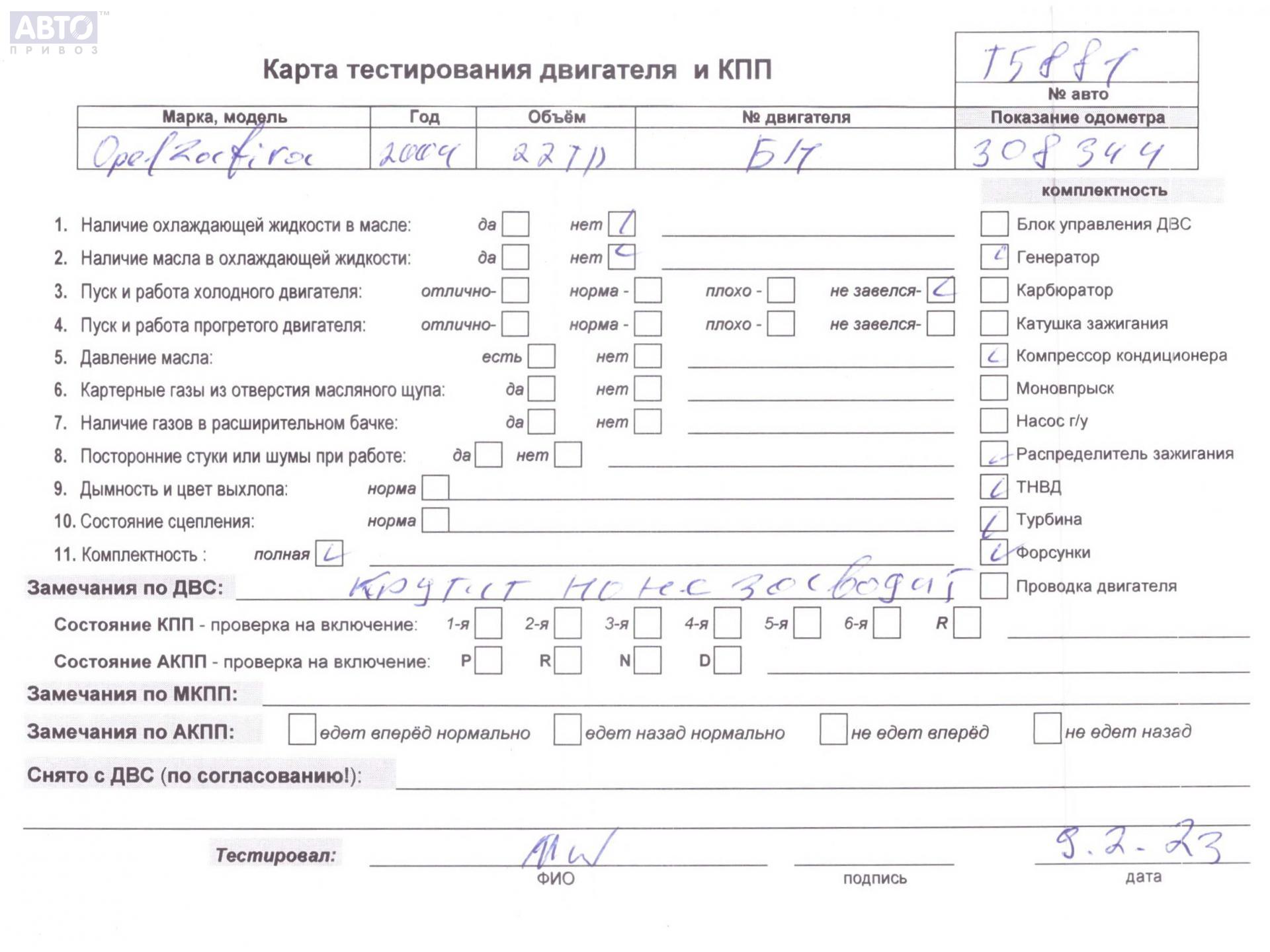 | Марка / Модель / Год: | Opel Zafira A (1999-2005) 2004 |