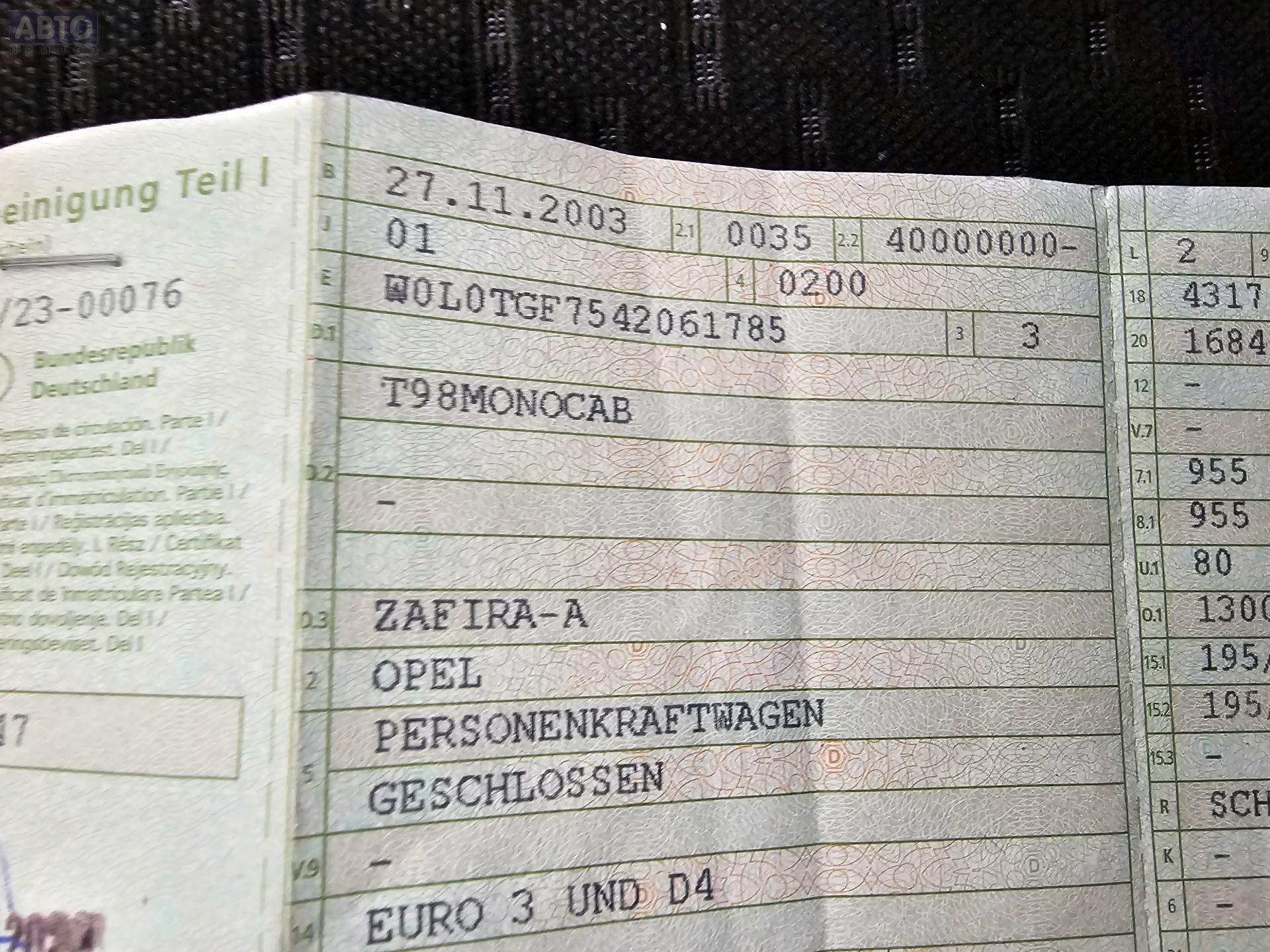 | Марка / Модель / Год: | Opel Zafira A (1999-2005) 2003 |