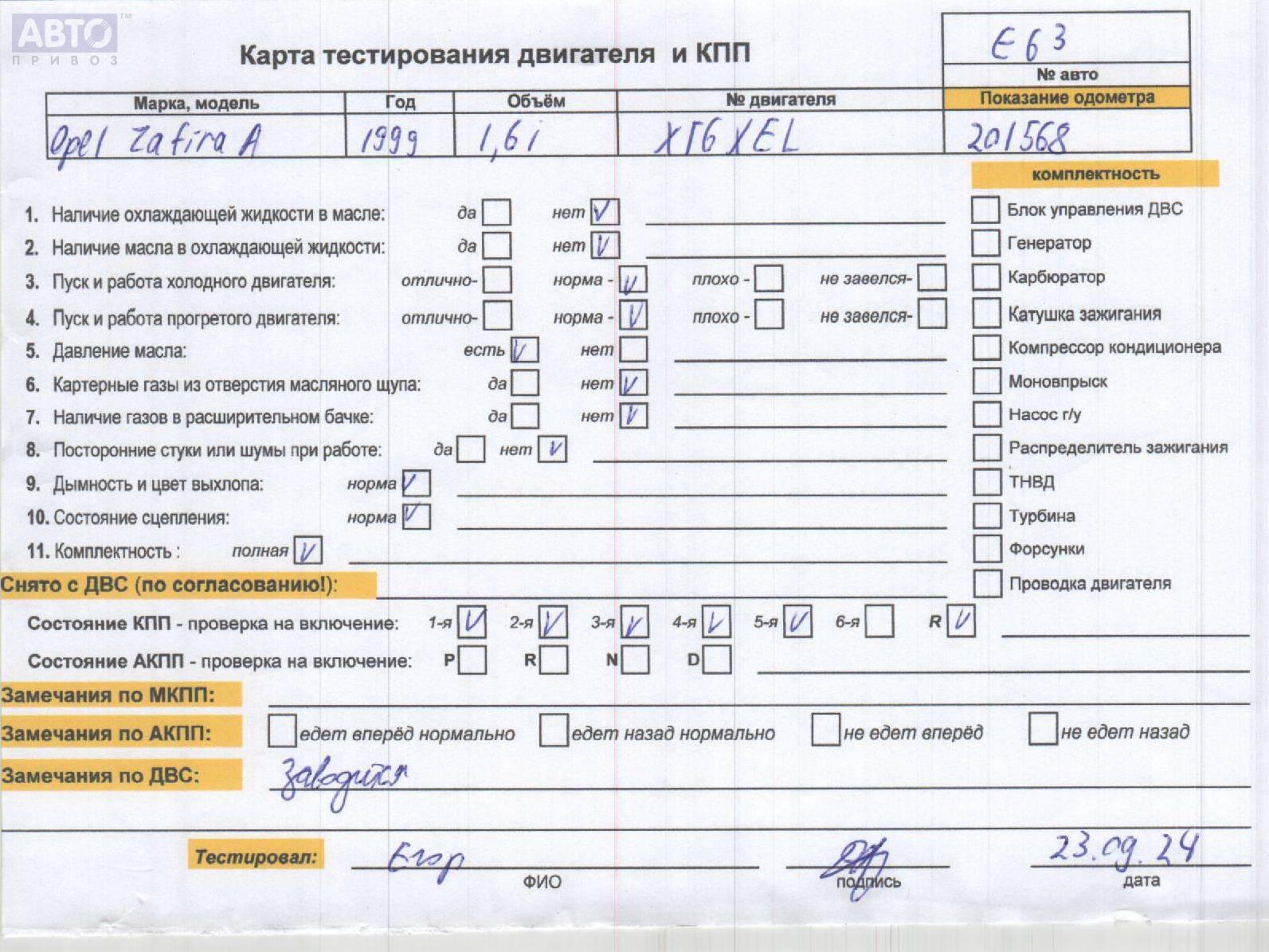| Марка / Модель / Год: | Opel Zafira A (1999-2005) 1999 |