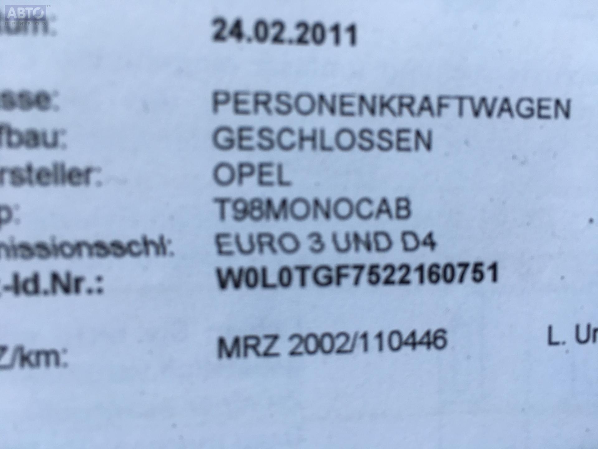 | Марка / Модель / Год: | Opel Zafira A (1999-2005) 2002 |