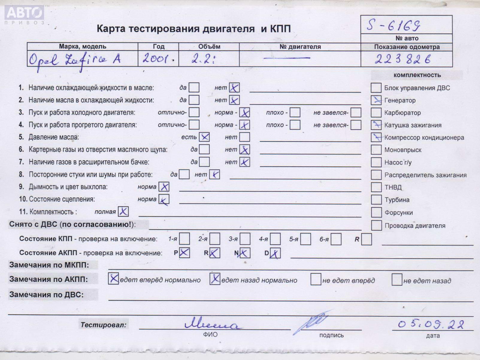 | Марка / Модель / Год: | Opel Zafira A (1999-2005) 2001 |