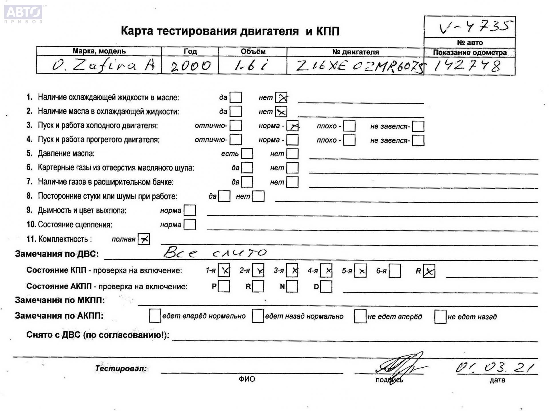 | Марка / Модель / Год: | Opel Zafira A (1999-2005) 2001 |
