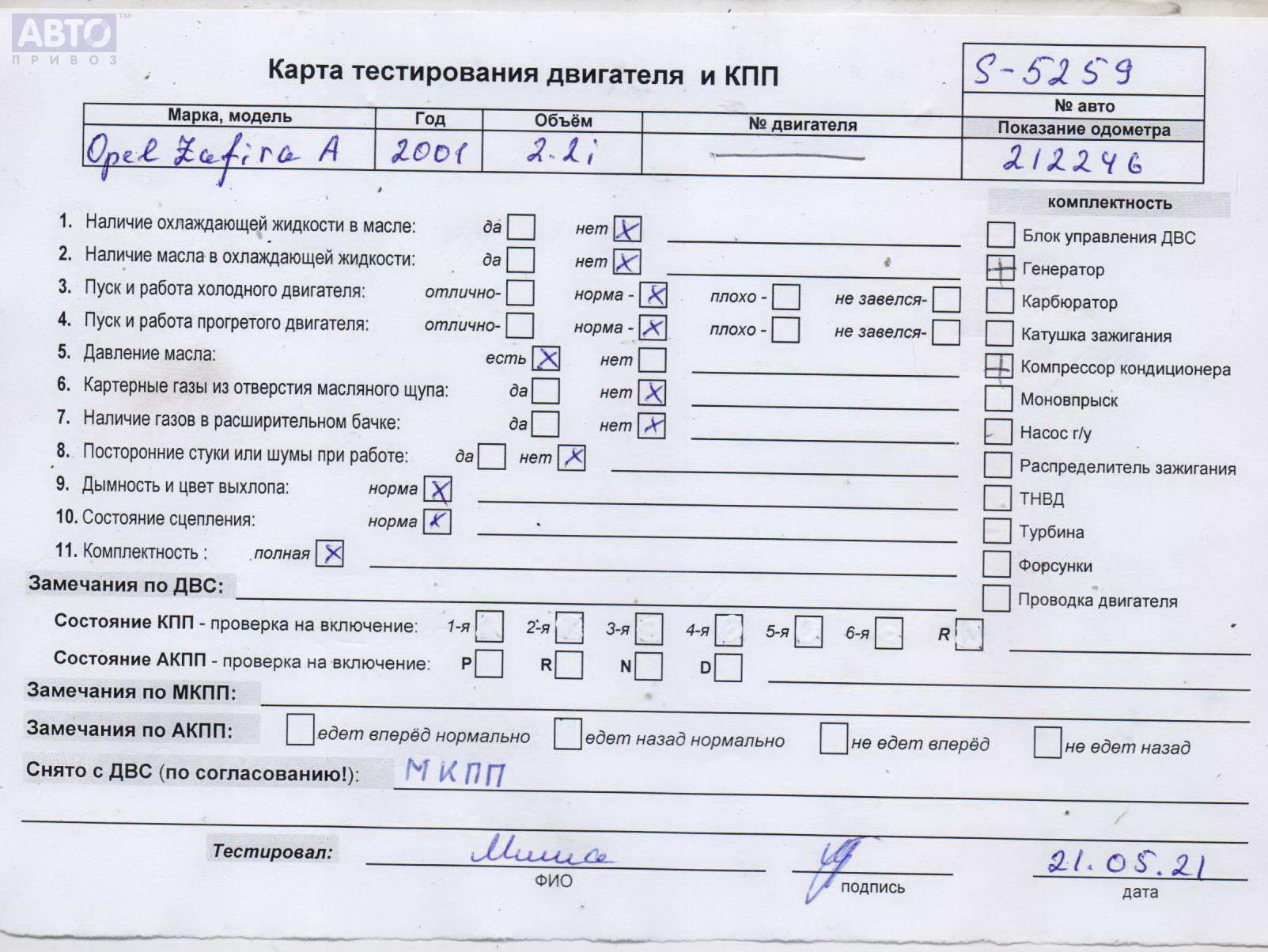 | Марка / Модель / Год: | Opel Zafira A (1999-2005) 2001 |