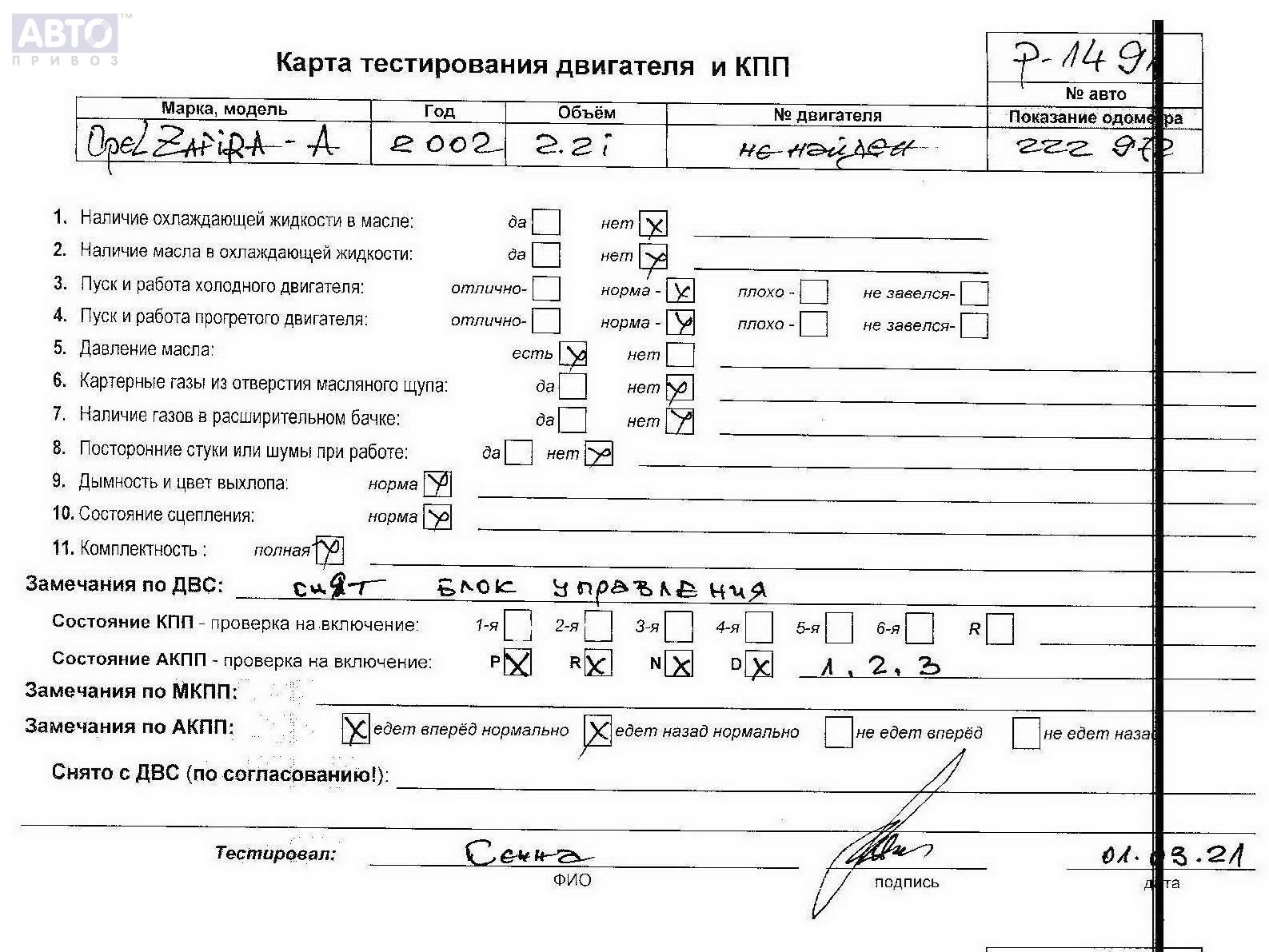 | Марка / Модель / Год: | Opel Zafira A (1999-2005) 2002 |