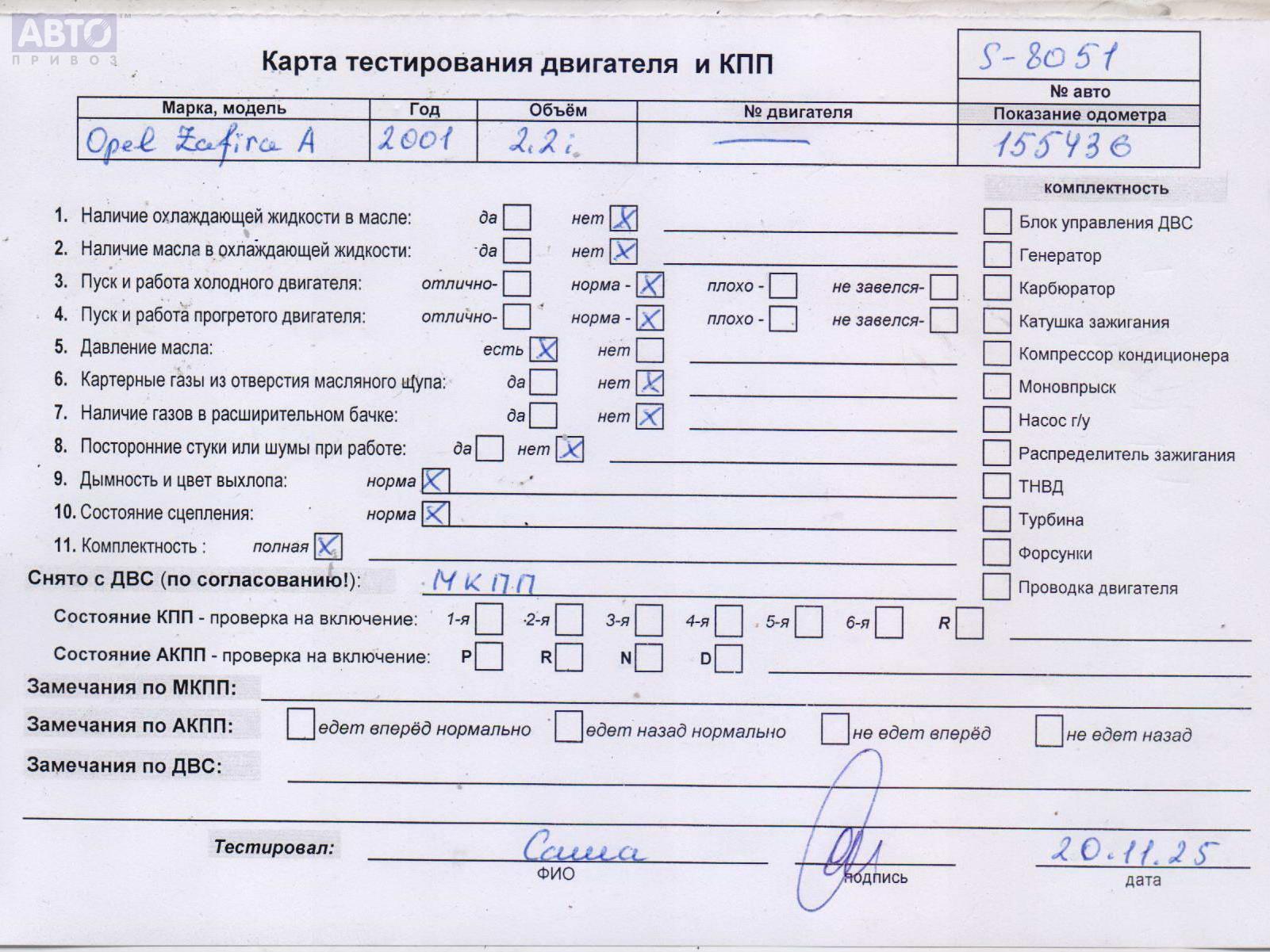 | Марка / Модель / Год: | Opel Zafira A (1999-2005) 2001 |