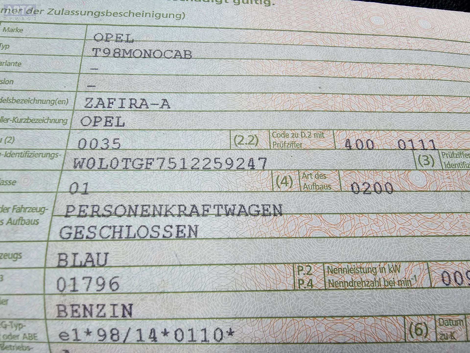 | Марка / Модель / Год: | Opel Zafira A (1999-2005) 2001 |