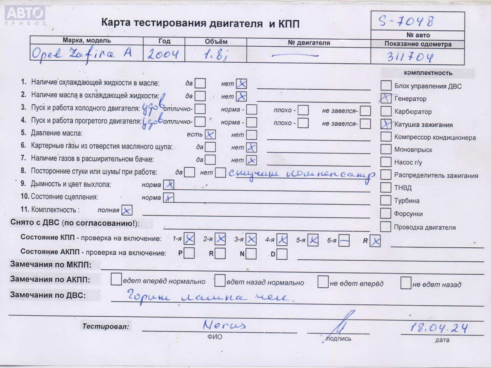 | Марка / Модель / Год: | Opel Zafira A (1999-2005) 2005 |