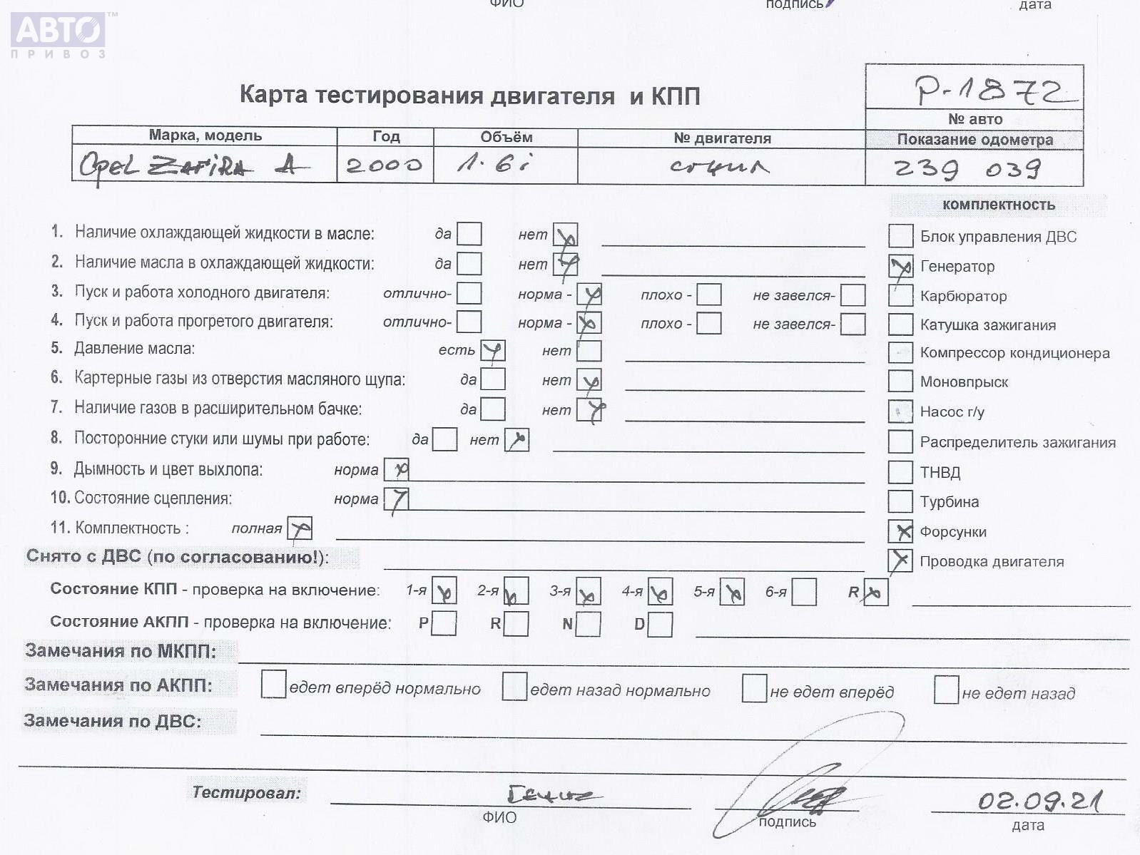 | Марка / Модель / Год: | Opel Zafira A (1999-2005) 2000 |
