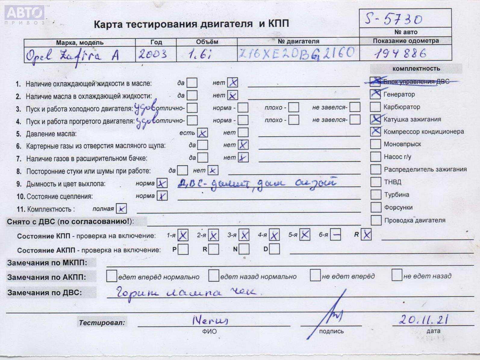 | Марка / Модель / Год: | Opel Zafira A (1999-2005) 2003 |