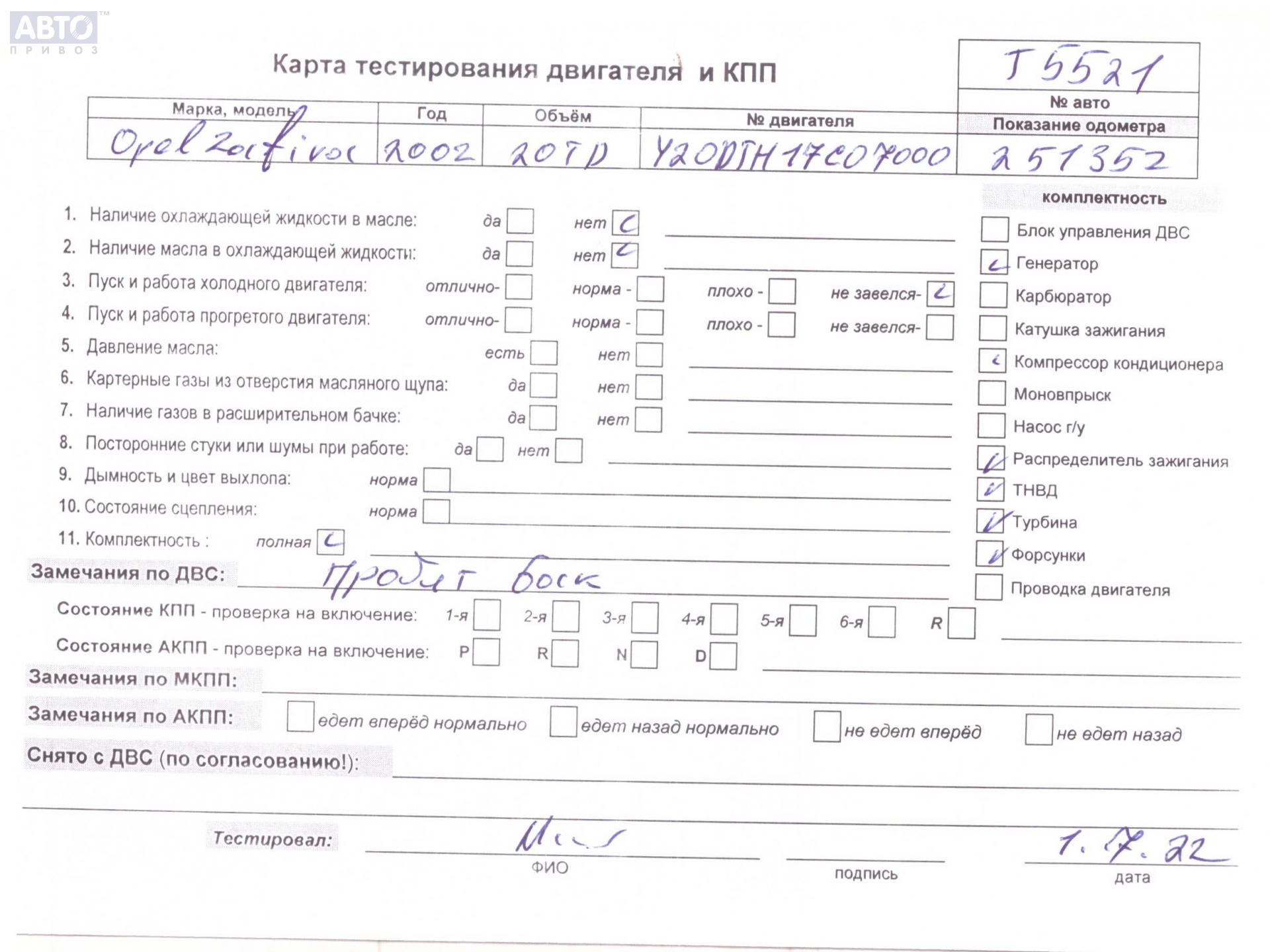 | Марка / Модель / Год: | Opel Zafira A (1999-2005) 2002 |