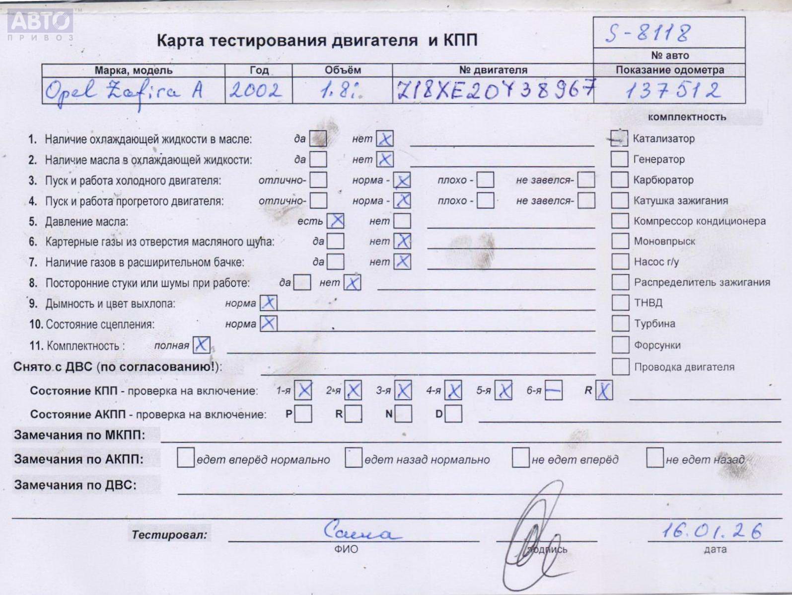 | Марка / Модель / Год: | Opel Zafira A (1999-2005) 2002 |