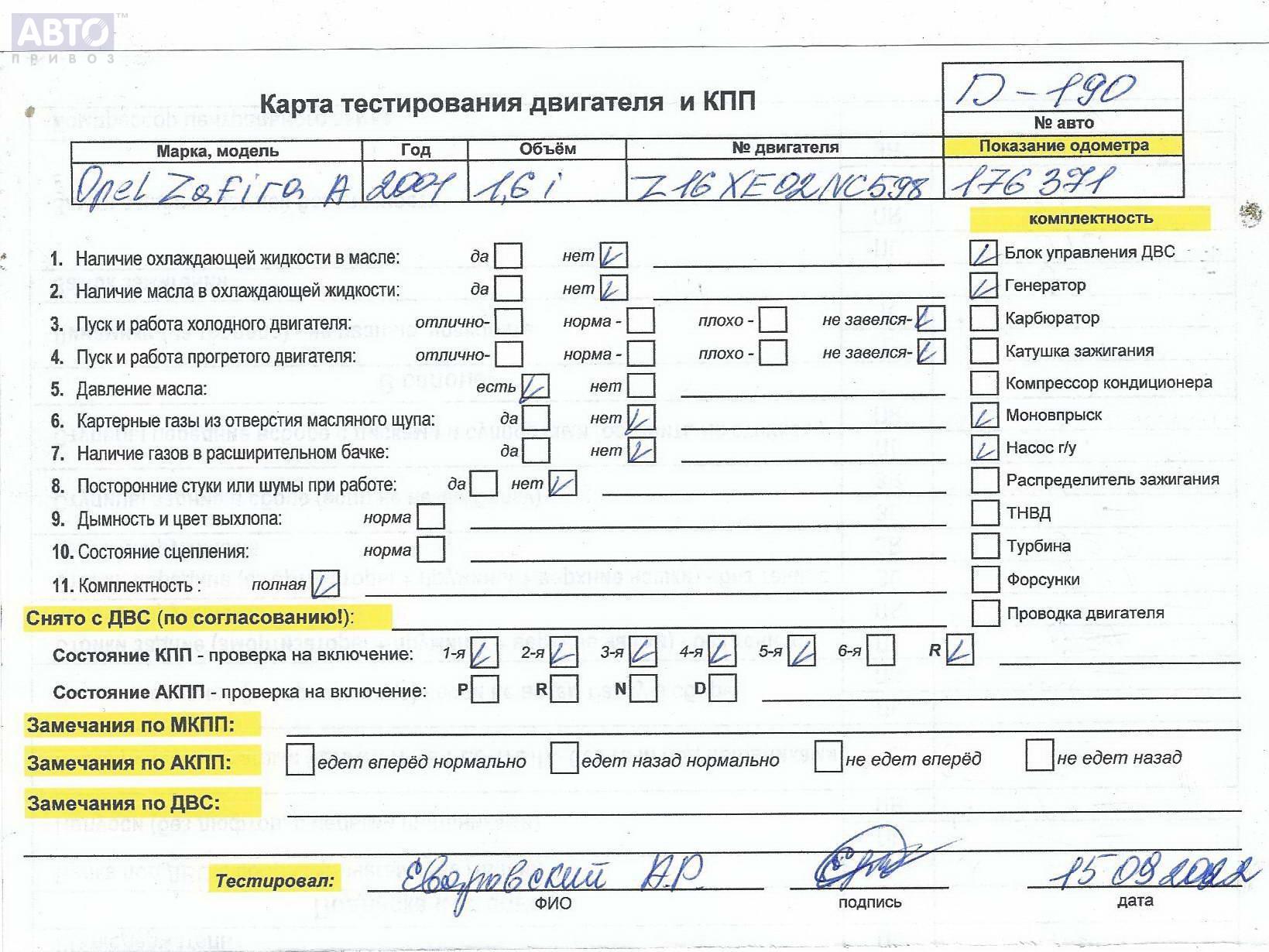 | Марка / Модель / Год: | Opel Zafira A (1999-2005) 2001 |
