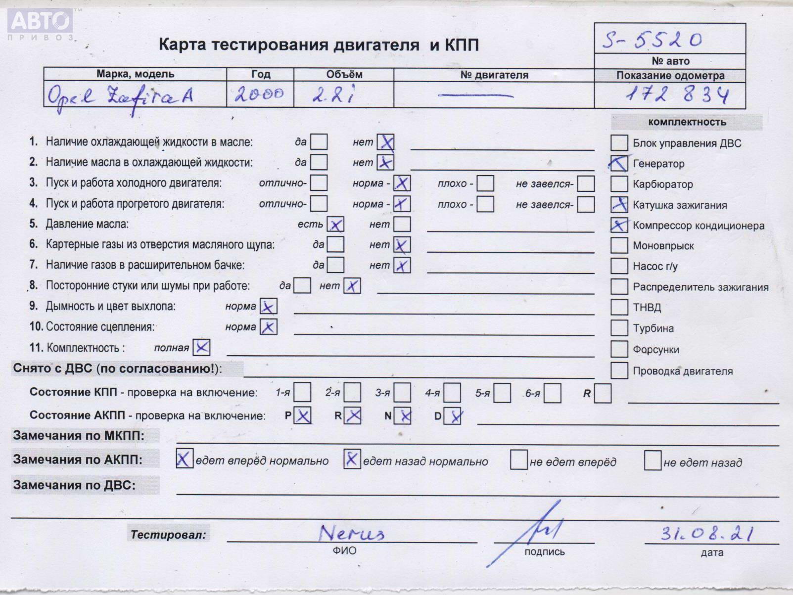| Марка / Модель / Год: | Opel Zafira A (1999-2005) 2000 |