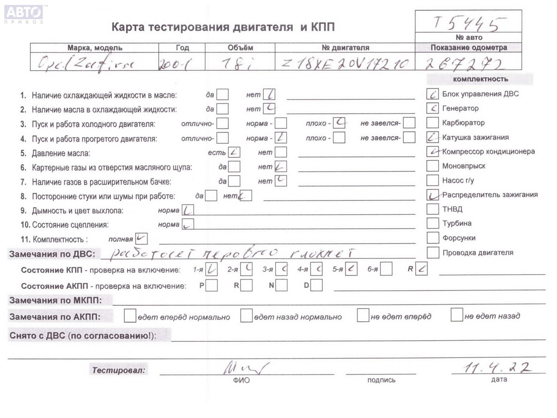 | Марка / Модель / Год: | Opel Zafira A (1999-2005) 2001 |