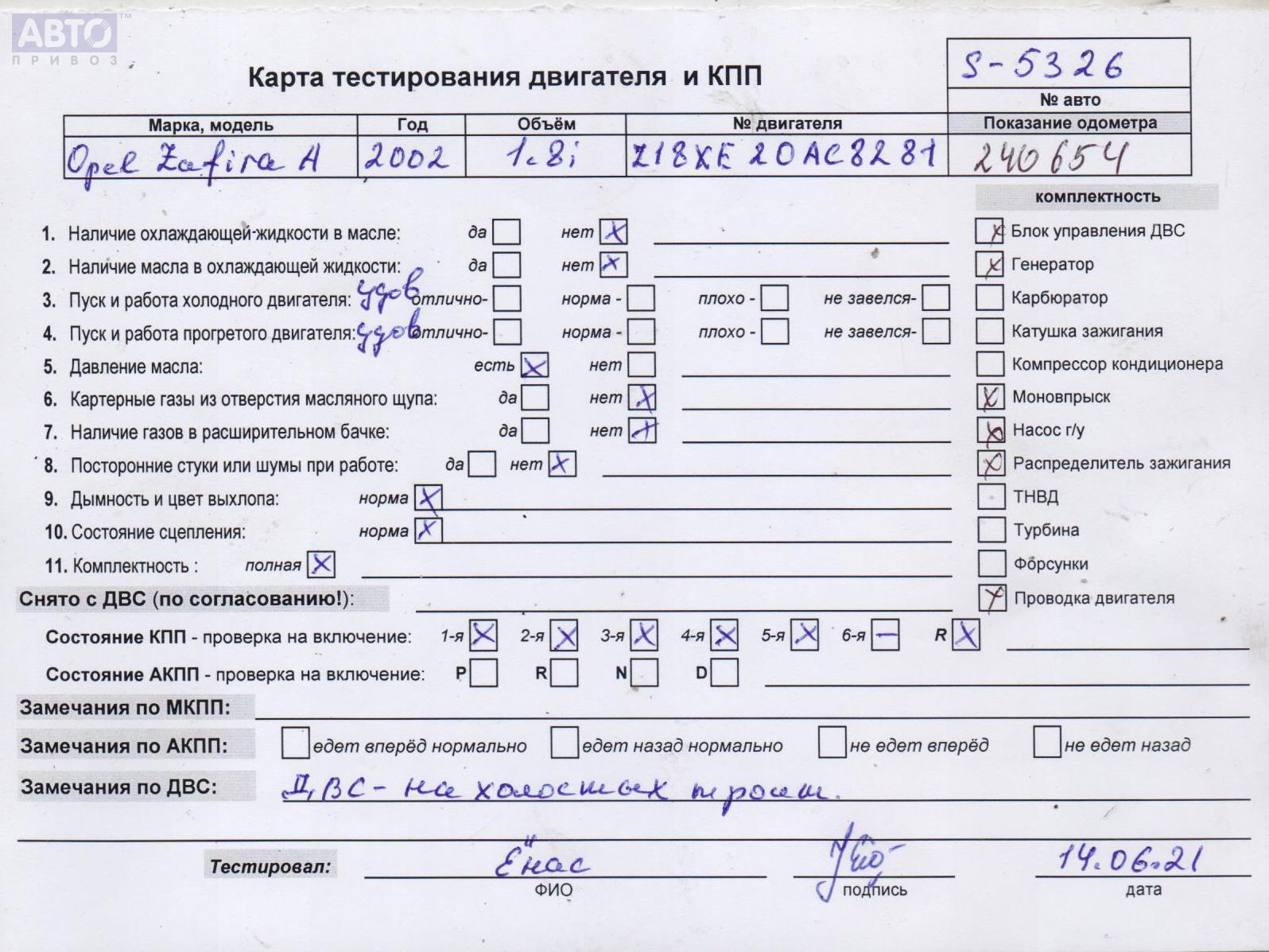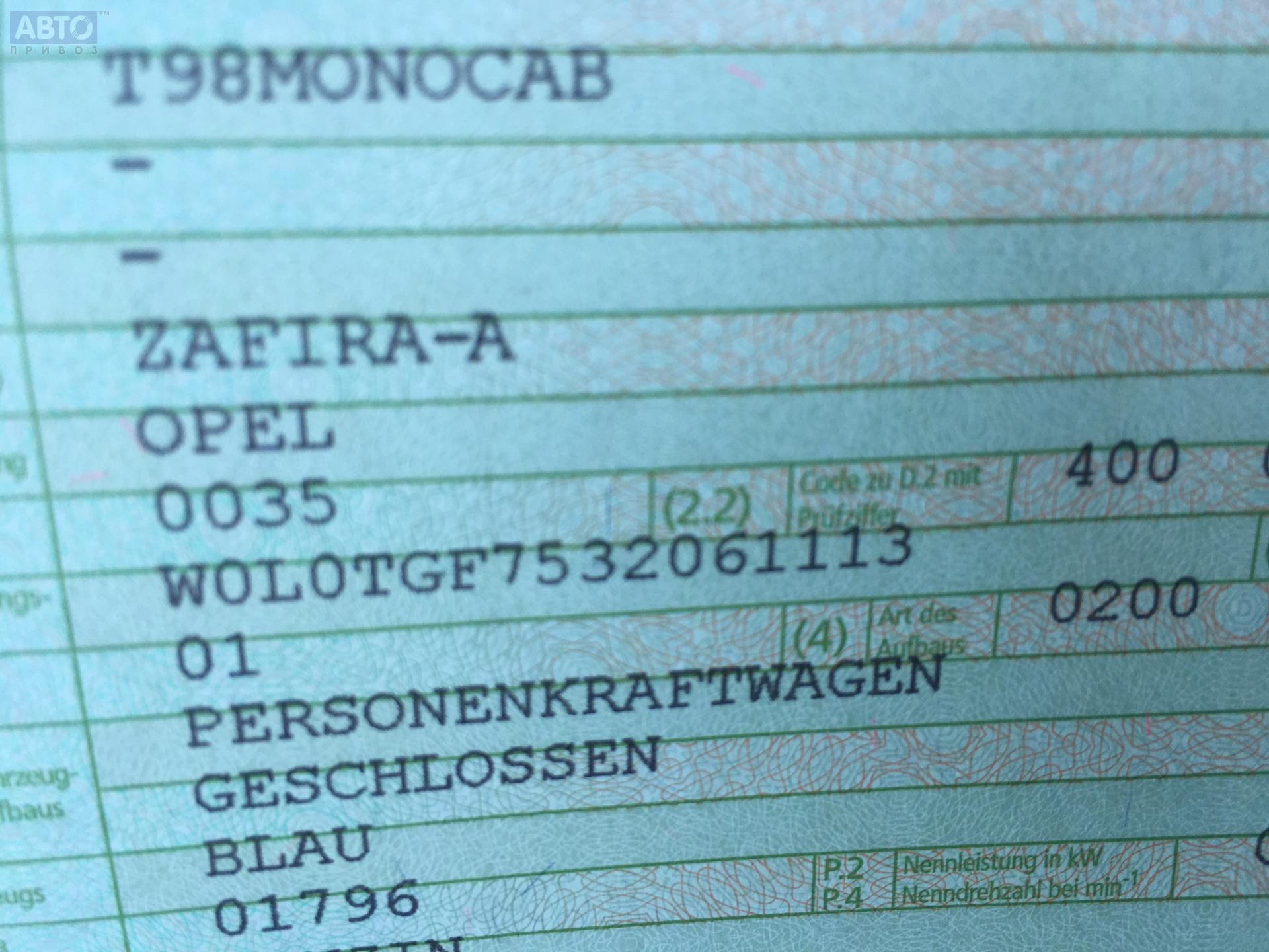 | Марка / Модель / Год: | Opel Zafira A (1999-2005) 2002 |
