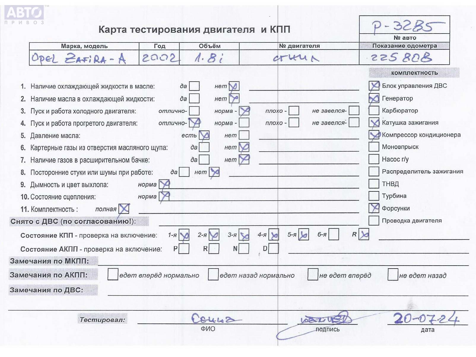 | Марка / Модель / Год: | Opel Zafira A (1999-2005) 2002 |