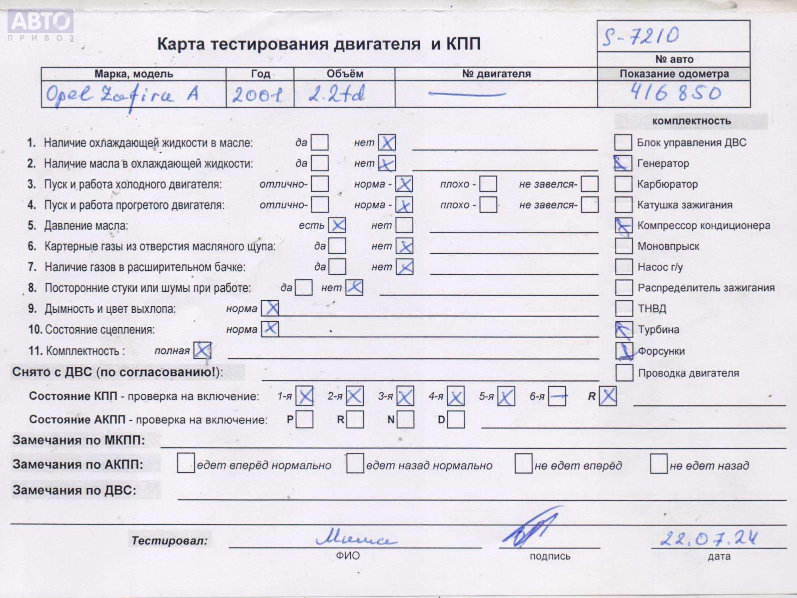 | Марка / Модель / Год: | Opel Zafira A (1999-2005) 2002 |