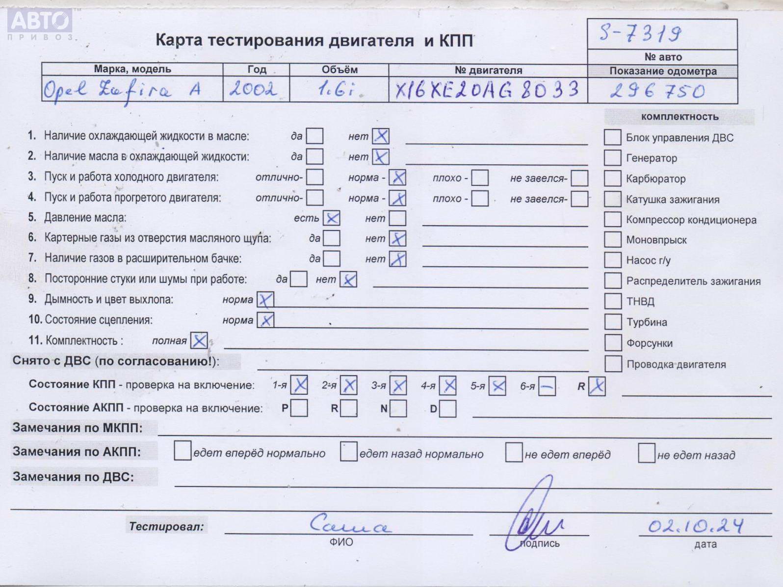 | Марка / Модель / Год: | Opel Zafira A (1999-2005) 2002 |