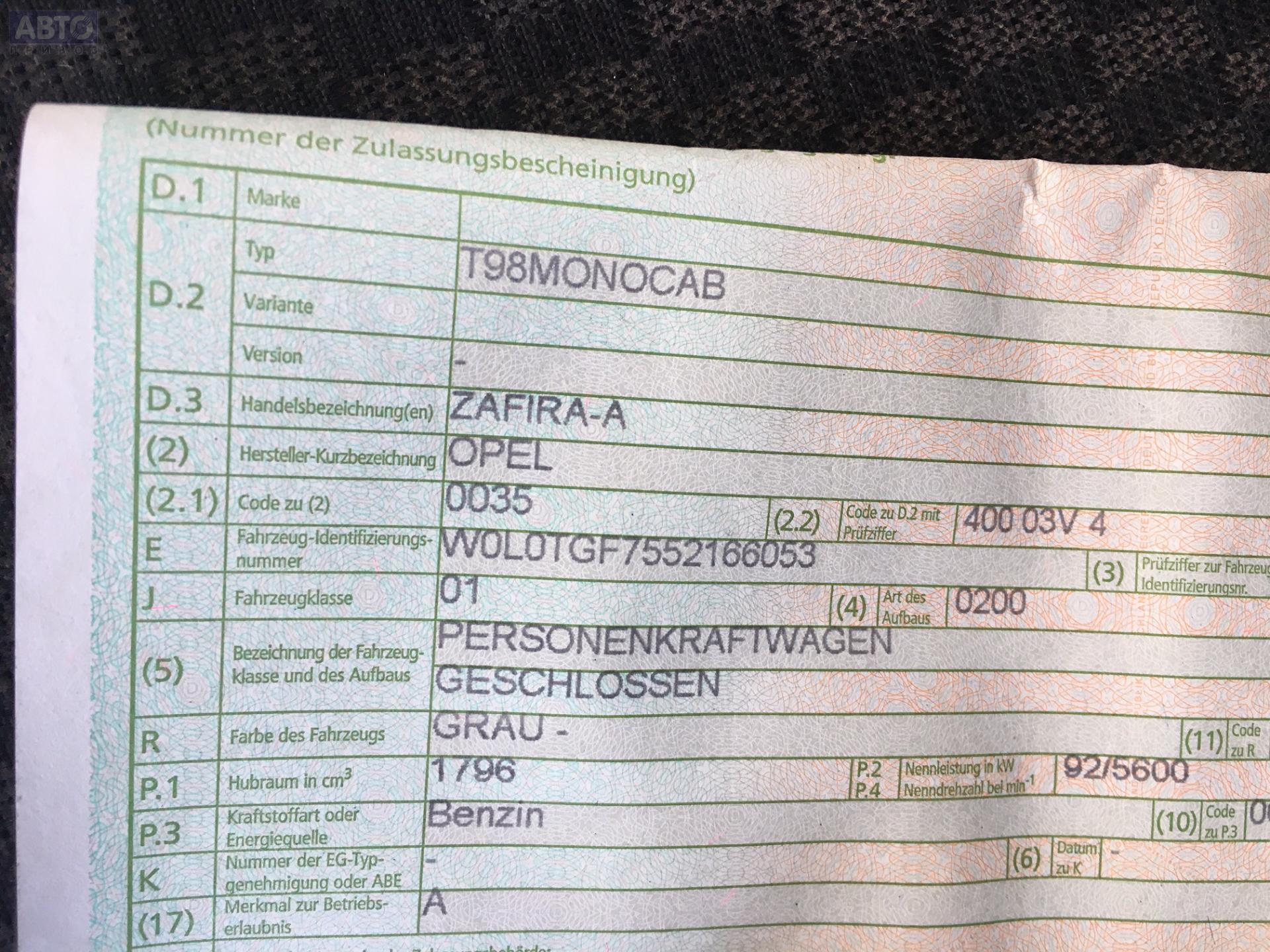 | Марка / Модель / Год: | Opel Zafira A (1999-2005) 2005 |
