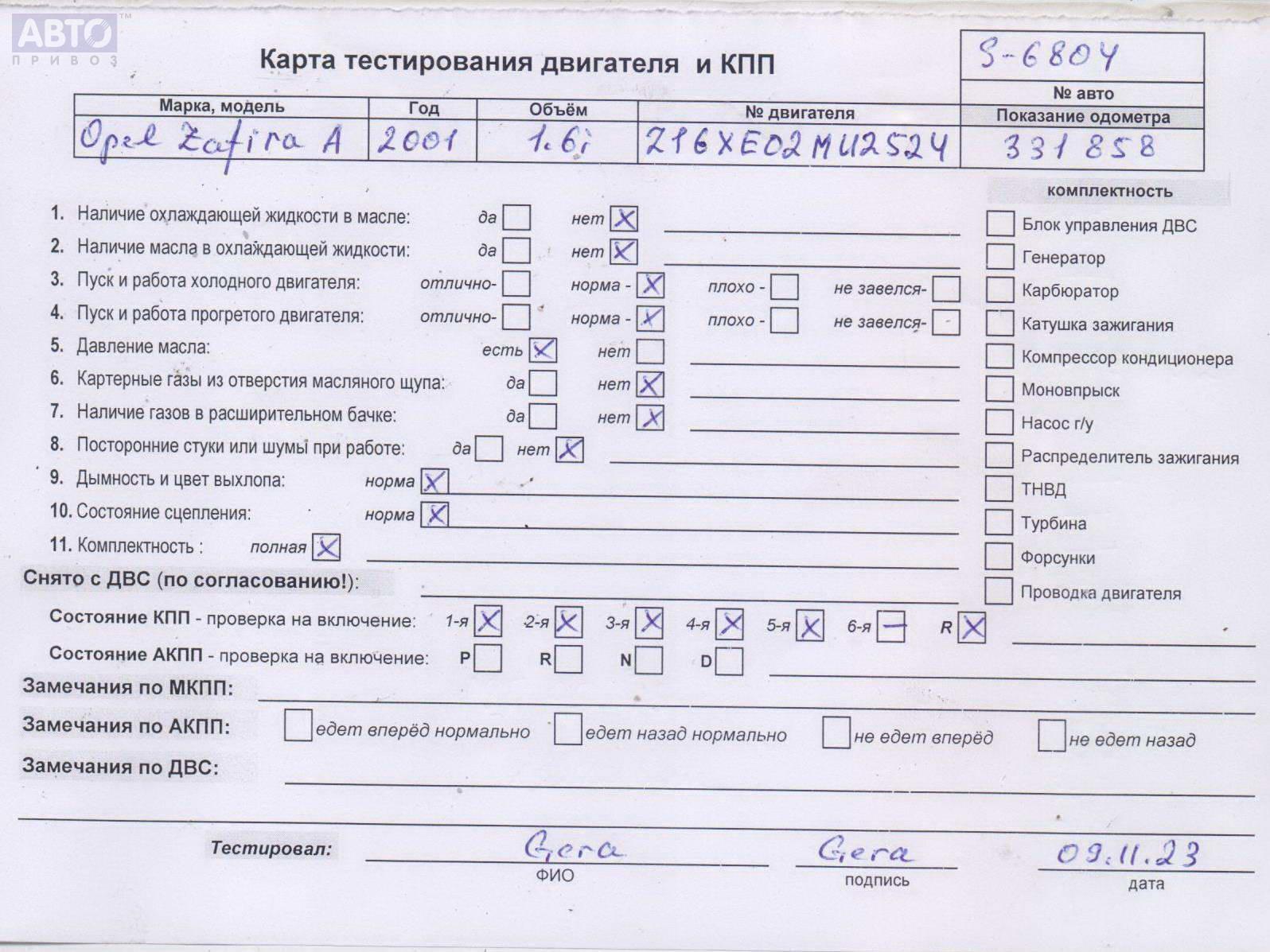 | Марка / Модель / Год: | Opel Zafira A (1999-2005) 2001 |