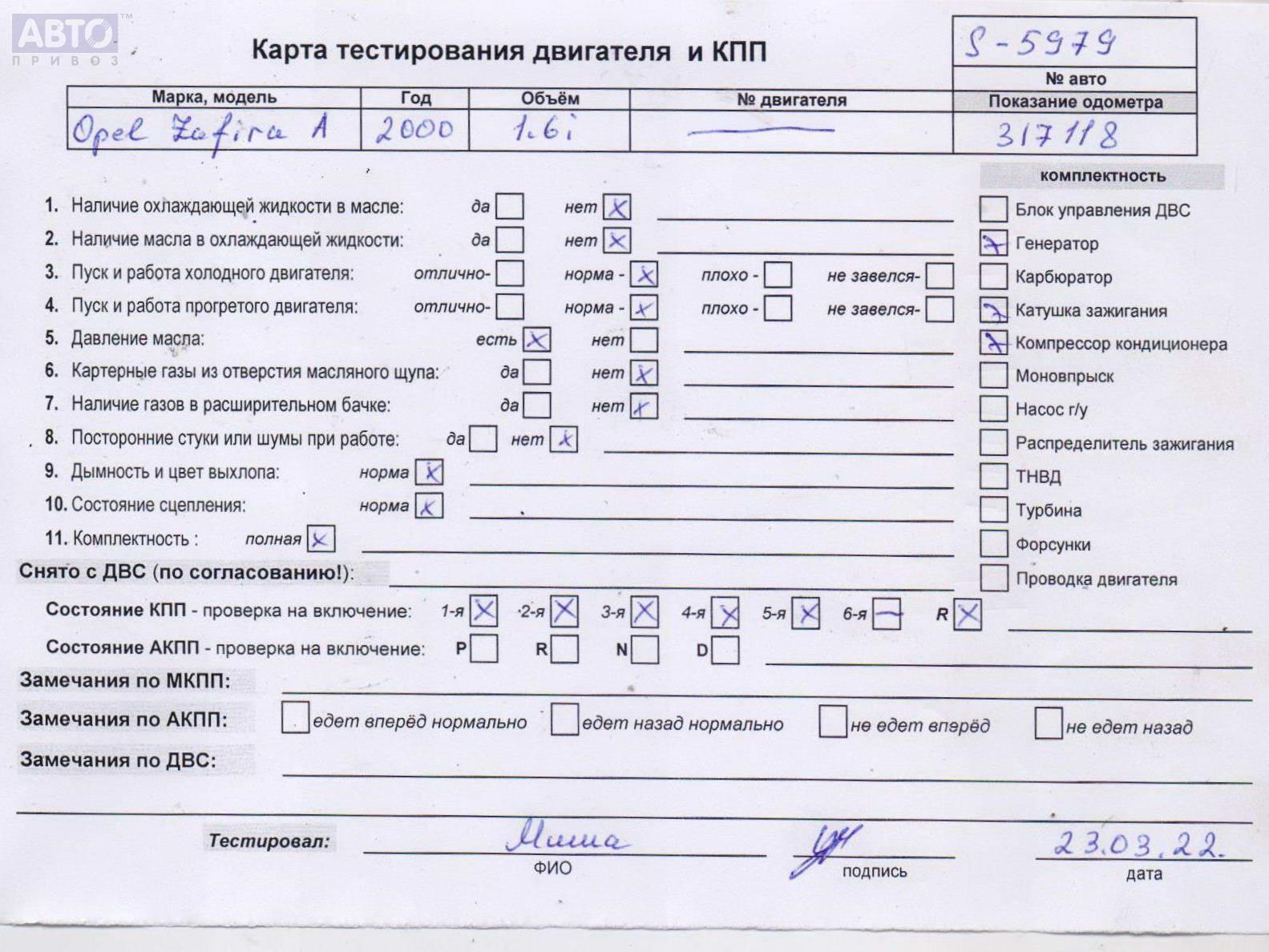 | Марка / Модель / Год: | Opel Zafira A (1999-2005) 2000 |