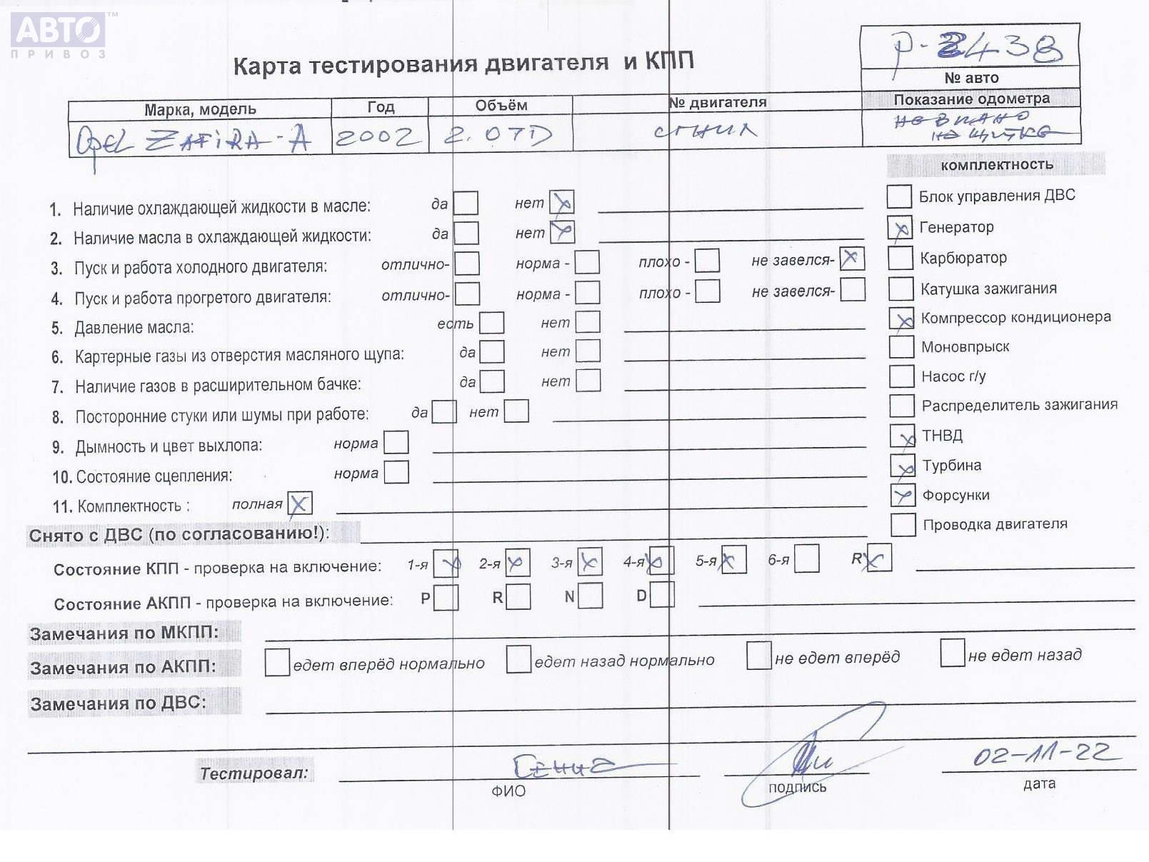 | Марка / Модель / Год: | Opel Zafira A (1999-2005) 2003 |