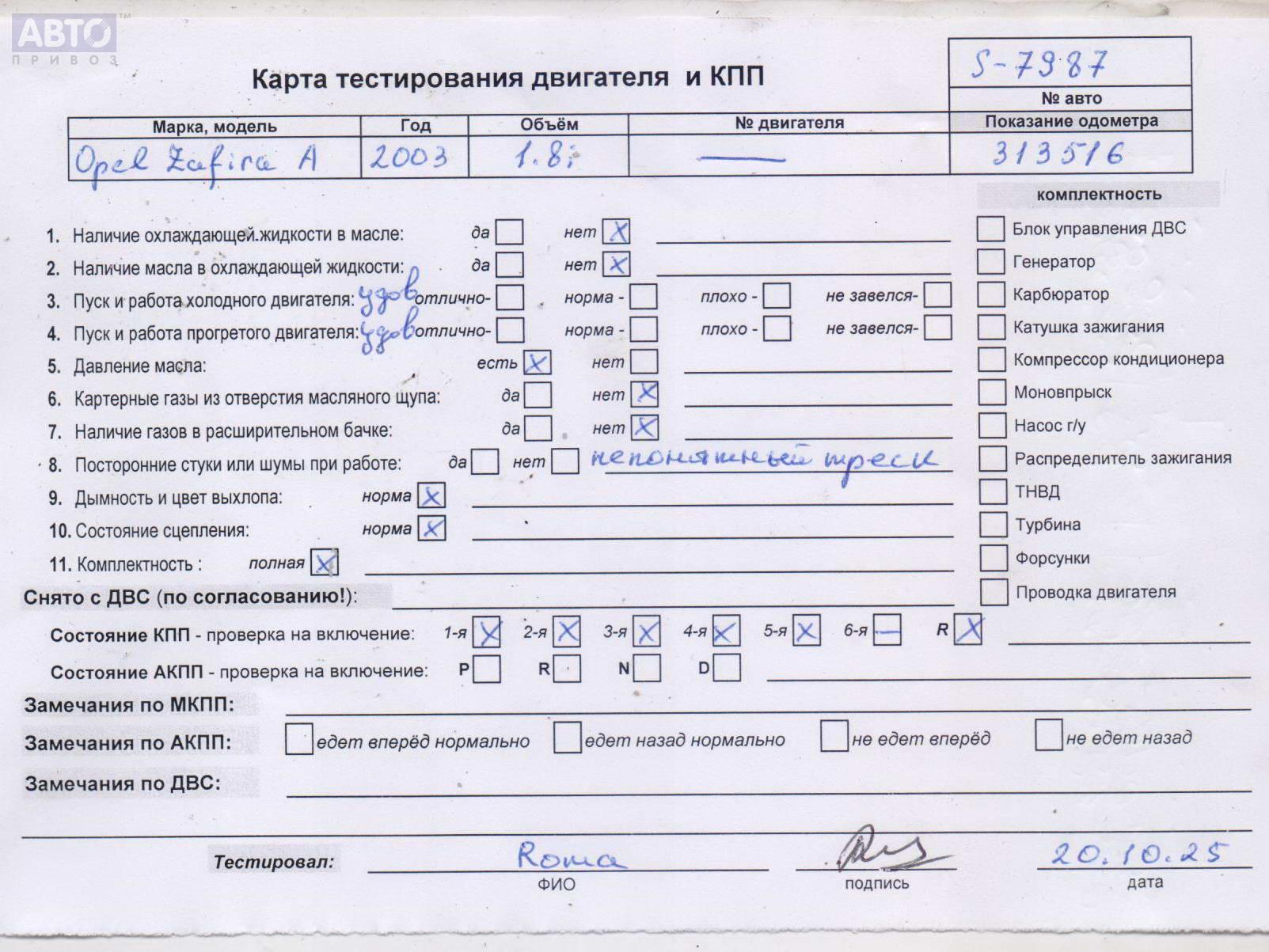 | Марка / Модель / Год: | Opel Zafira A (1999-2005) 2003 |