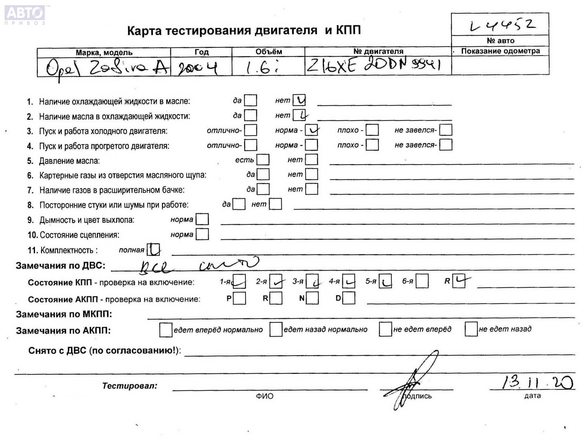 | Марка / Модель / Год: | Opel Zafira A (1999-2005) 2004 |