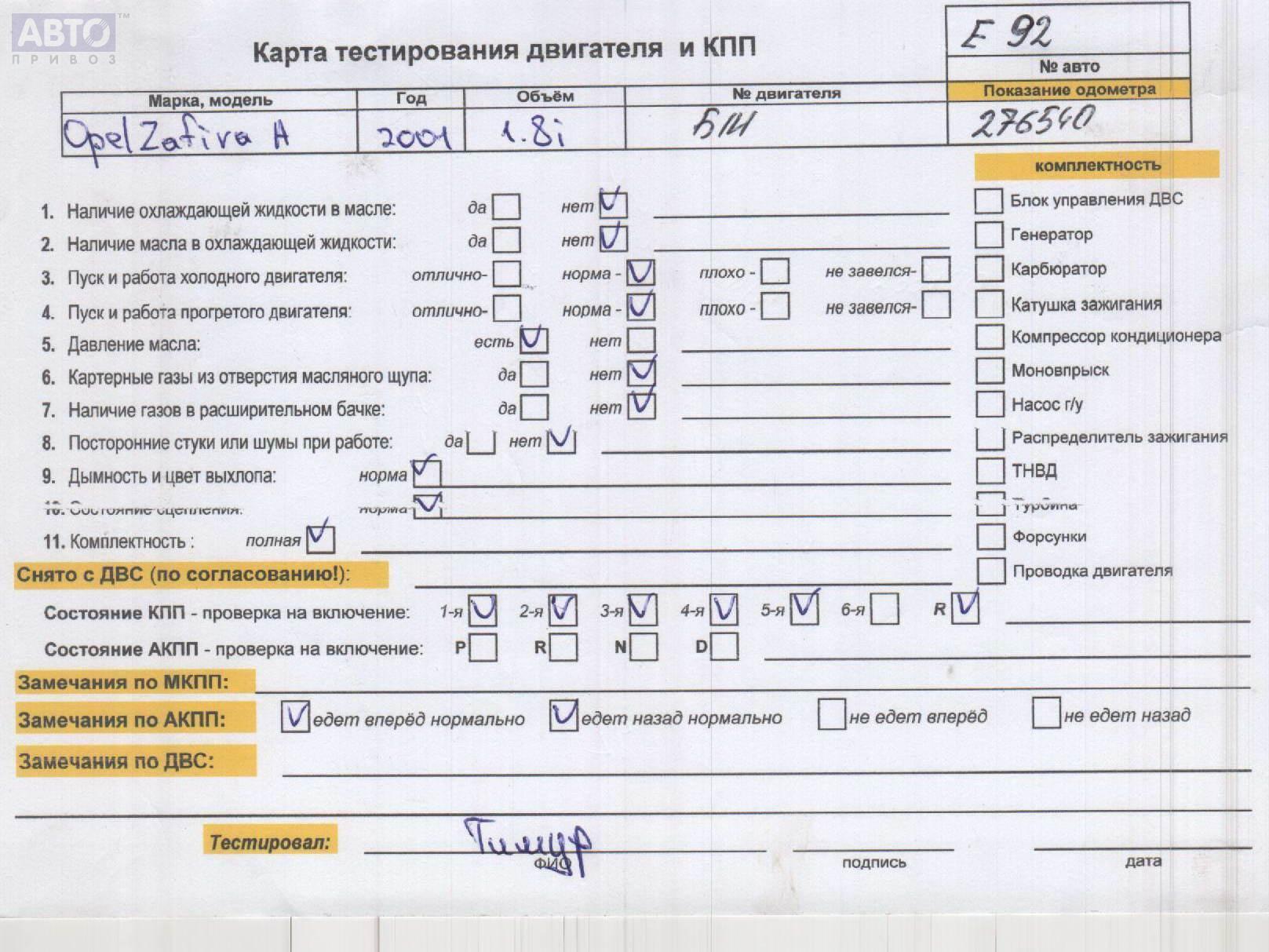 | Марка / Модель / Год: | Opel Zafira A (1999-2005) 2001 |