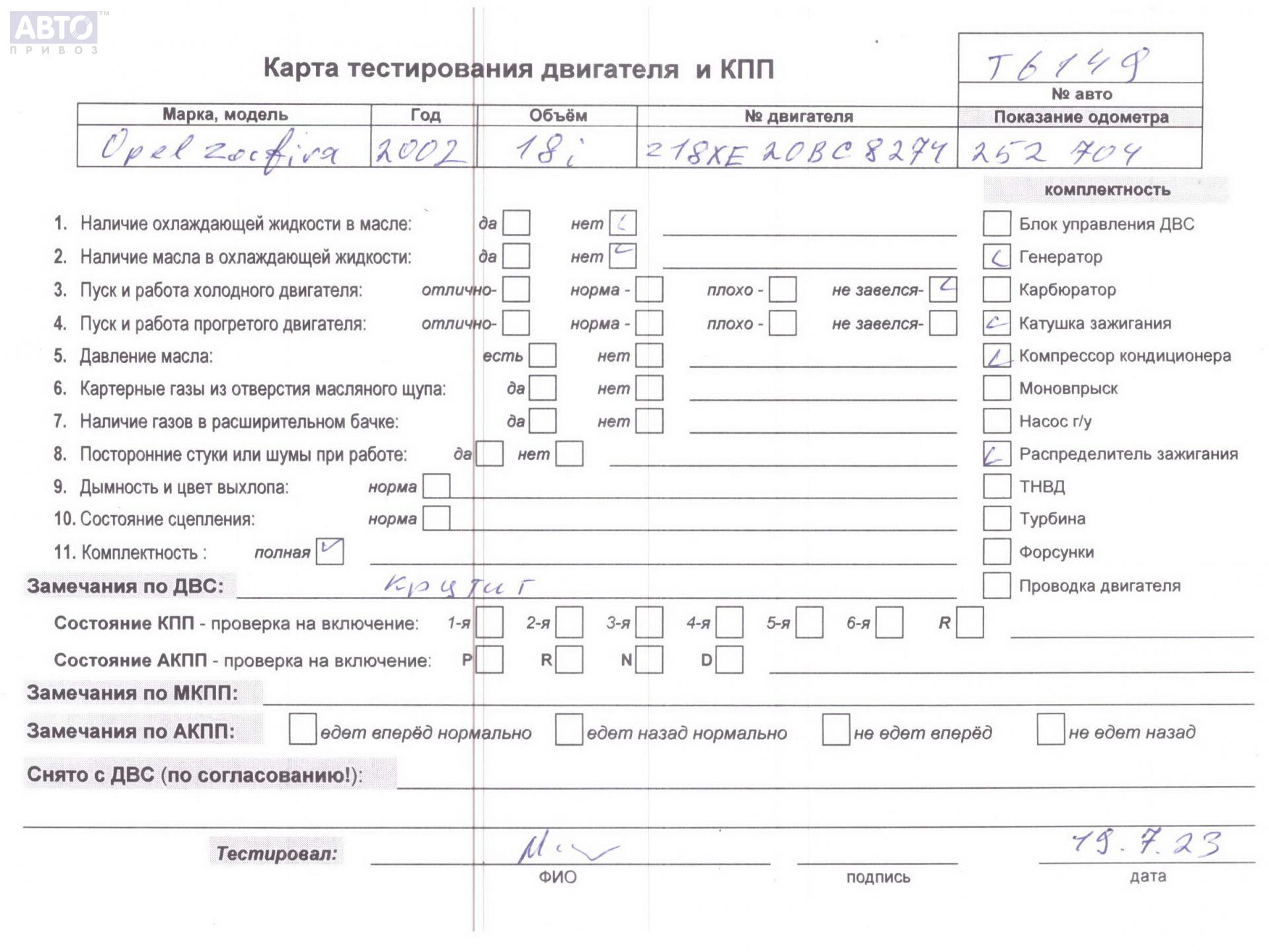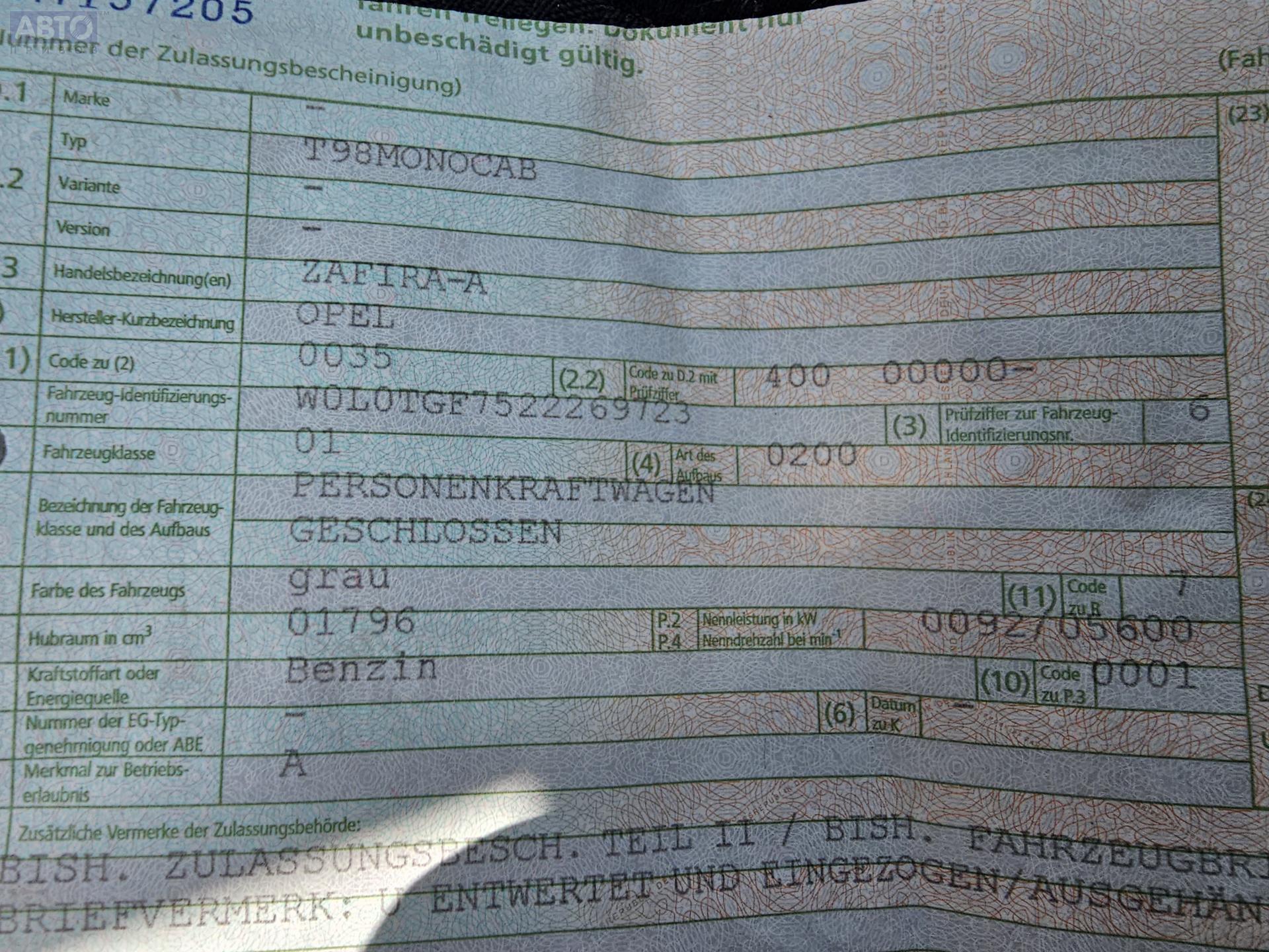 | Марка / Модель / Год: | Opel Zafira A (1999-2005) 2002 |