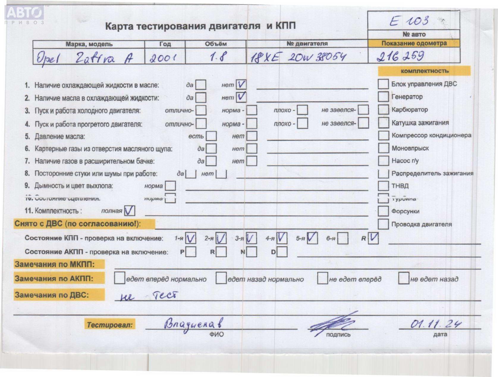 | Марка / Модель / Год: | Opel Zafira A (1999-2005) 2001 |