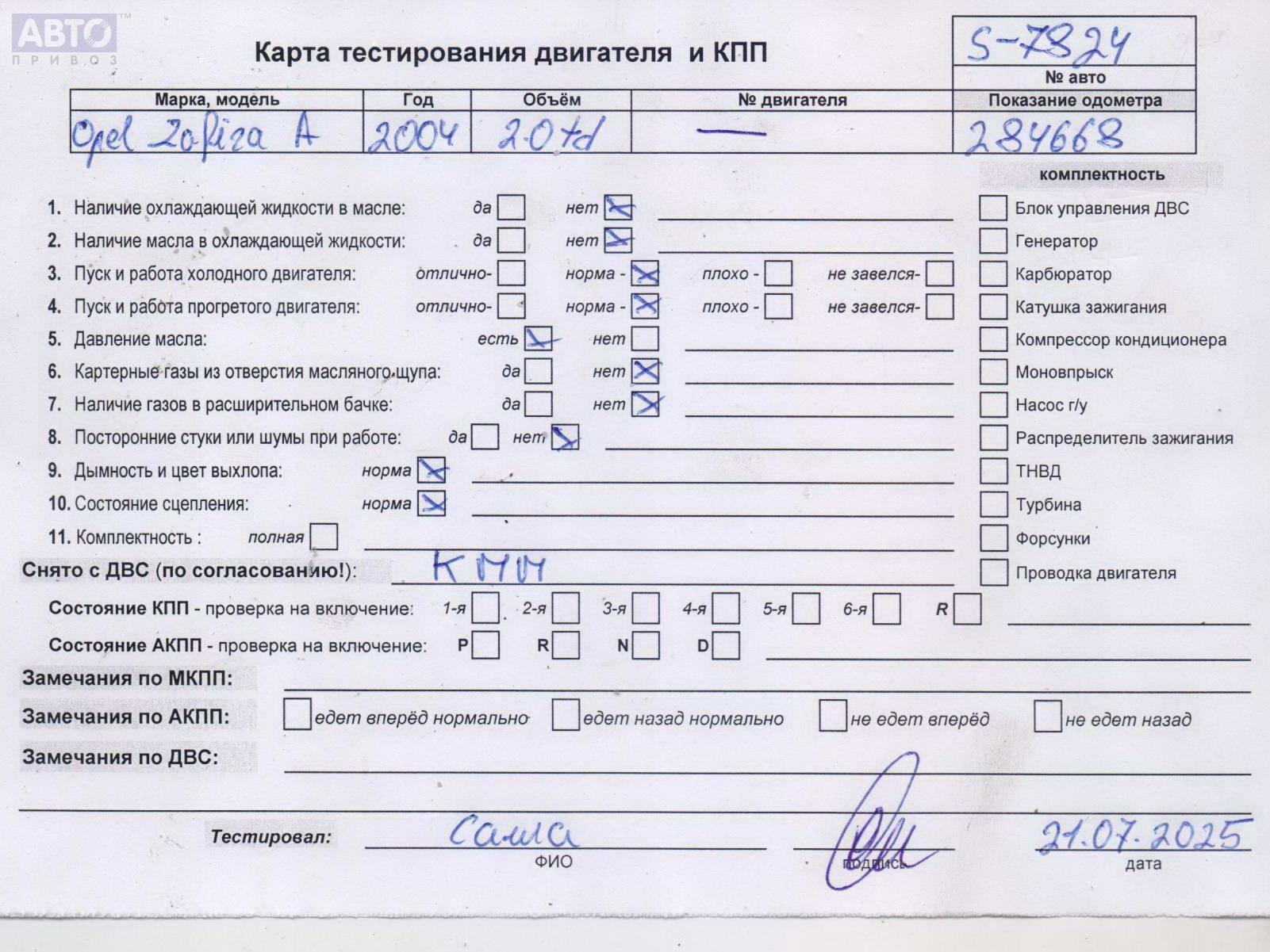| Марка / Модель / Год: | Opel Zafira A (1999-2005) 2004 |