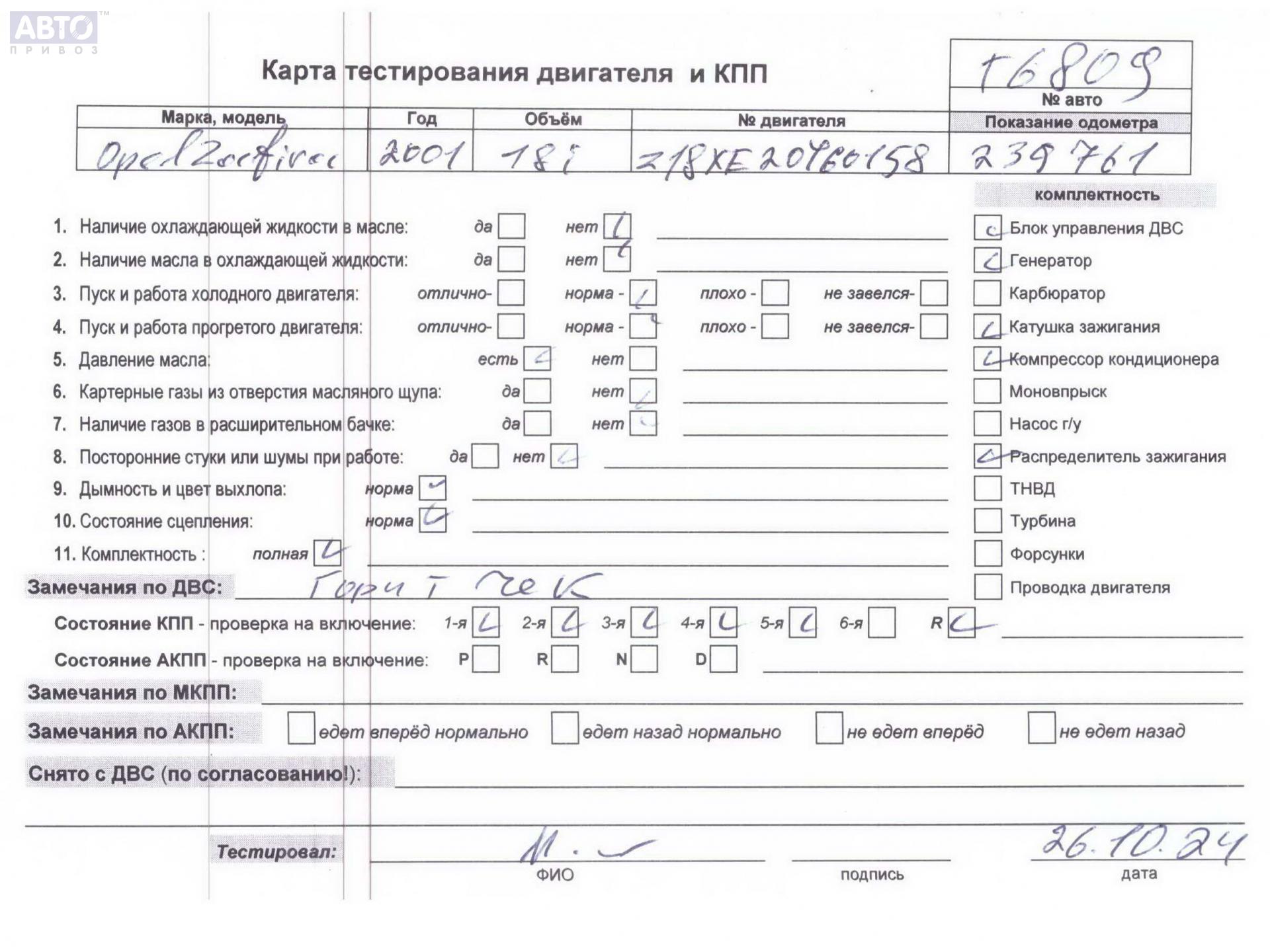 | Марка / Модель / Год: | Opel Zafira A (1999-2005) 2002 |