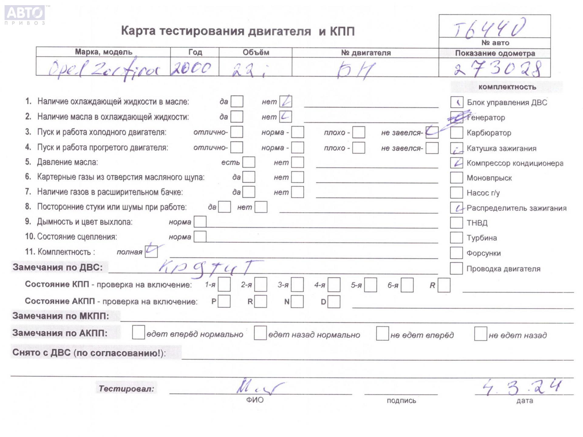| Марка / Модель / Год: | Opel Zafira A (1999-2005) 2000 |