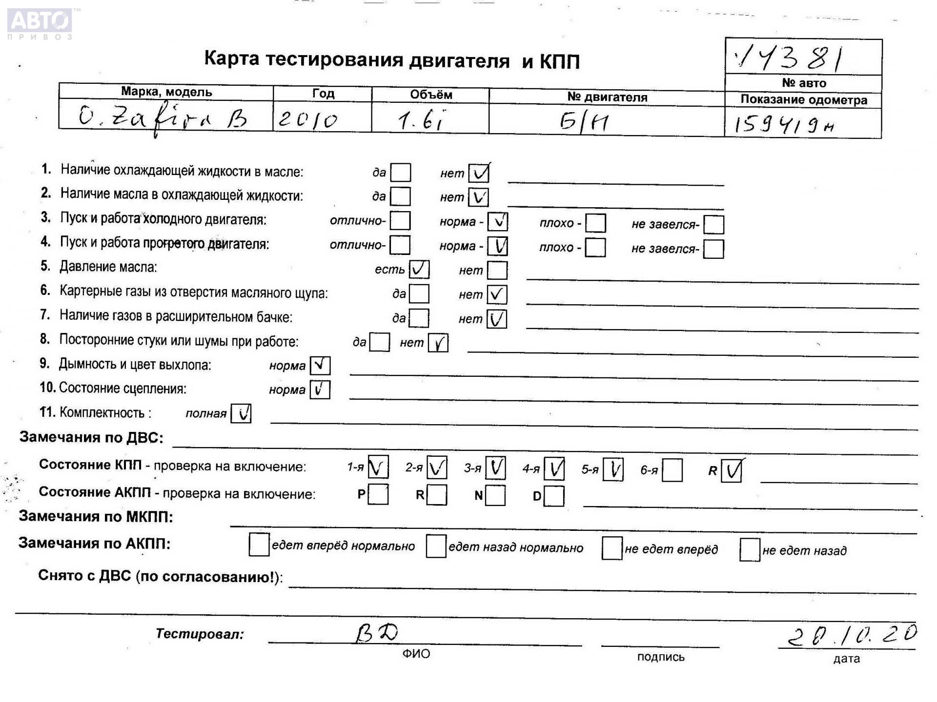| Марка / Модель / Год: | Opel Zafira B (2004-2014) 2010 |