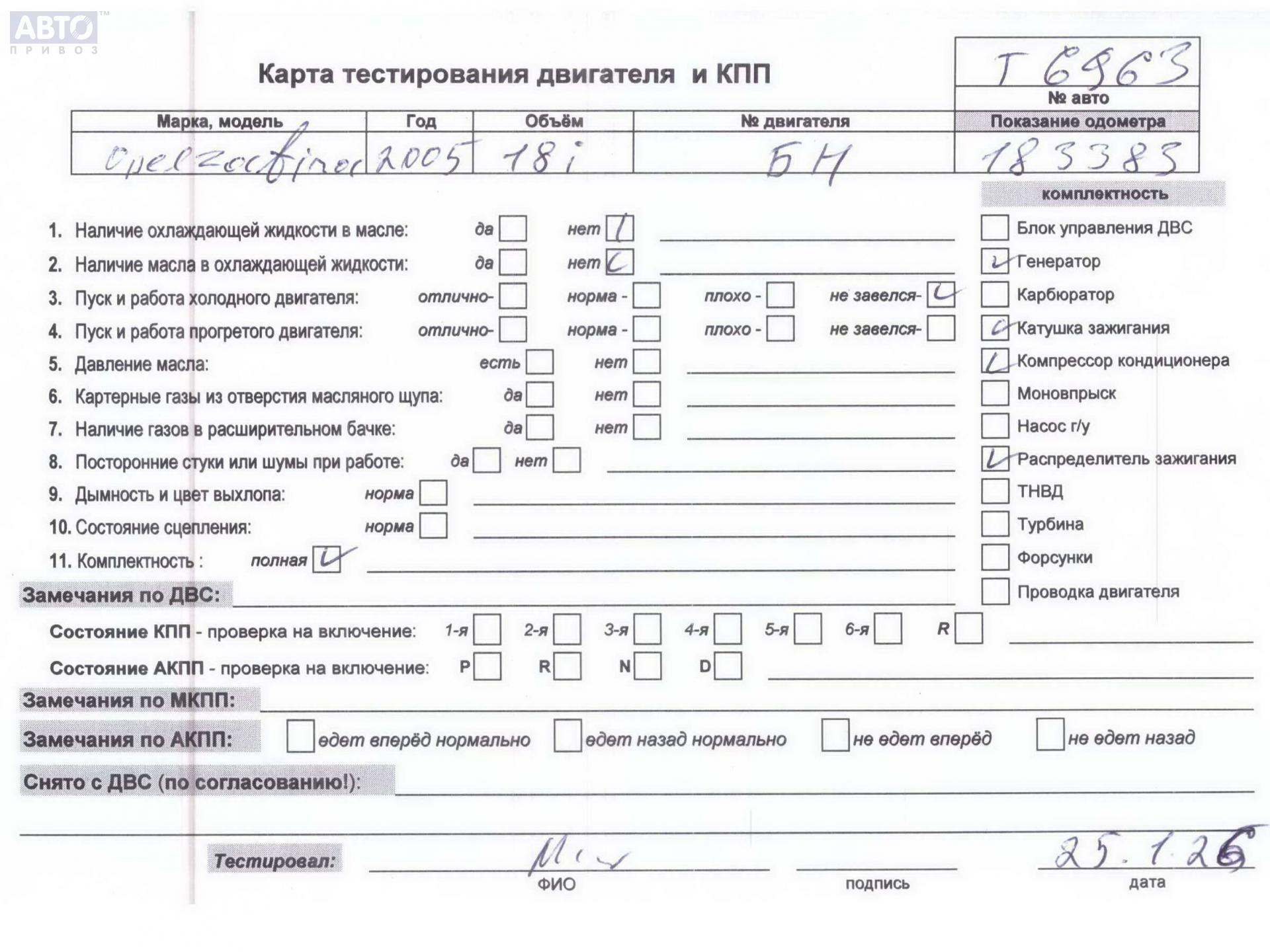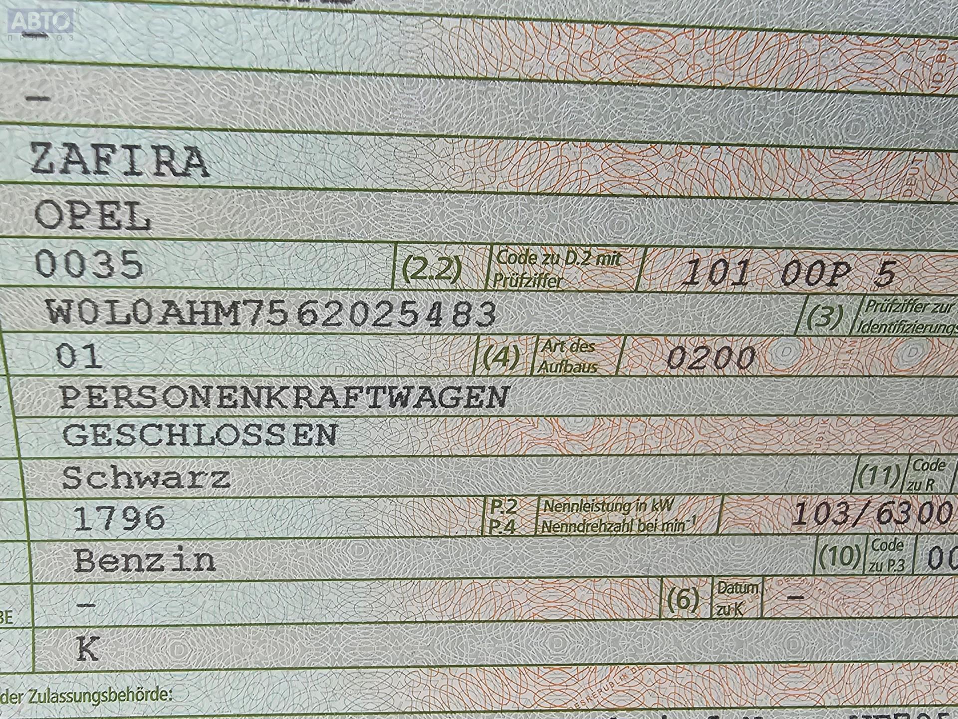 | Марка / Модель / Год: | Opel Zafira B (2004-2014) 2005 |