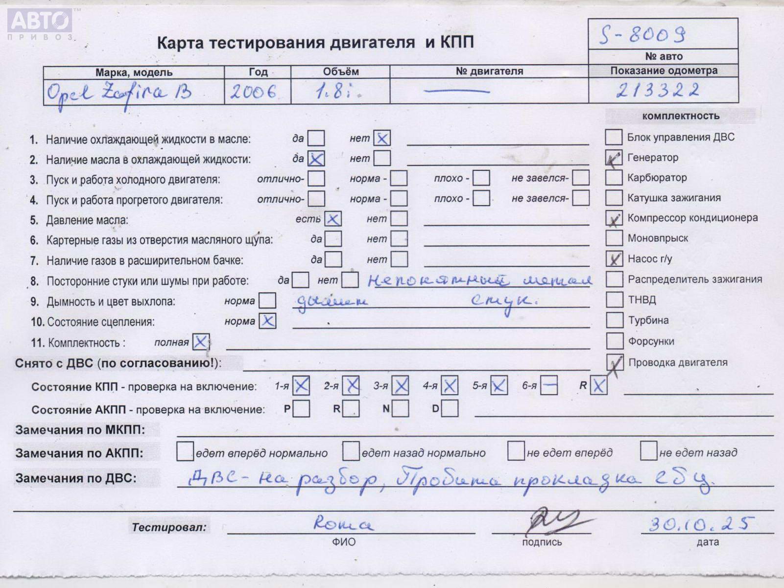 | Марка / Модель / Год: | Opel Zafira B (2004-2014) 2006 |